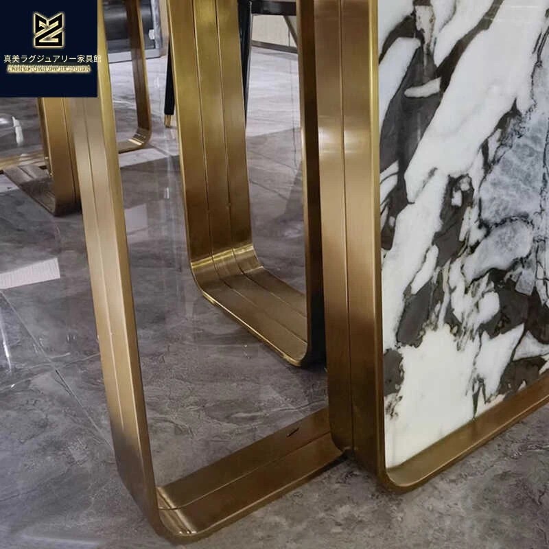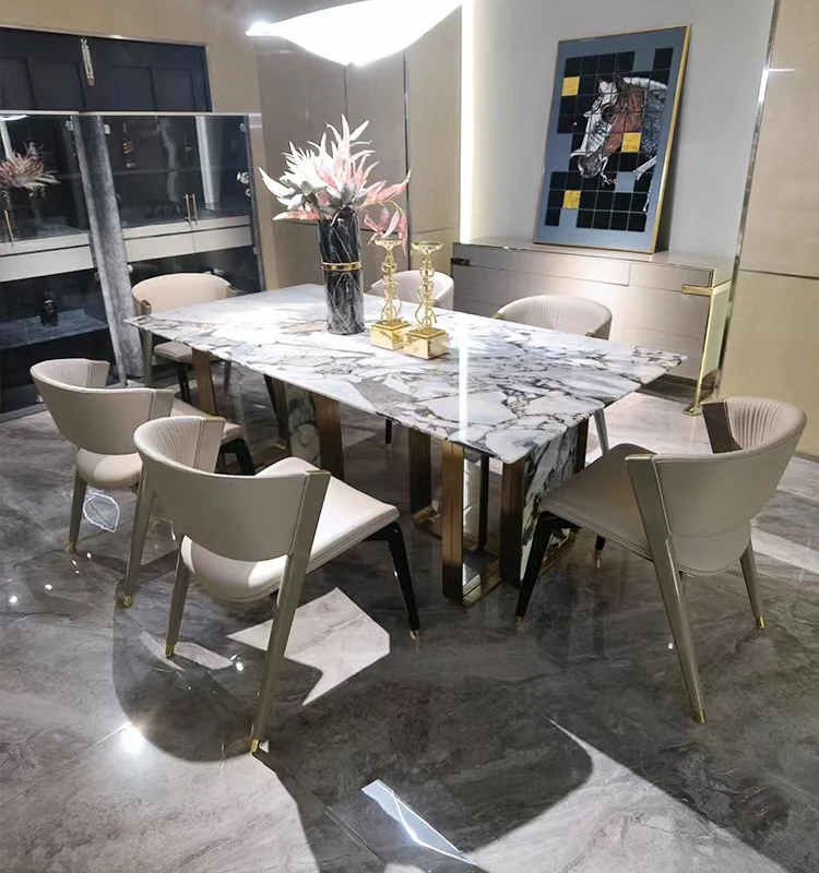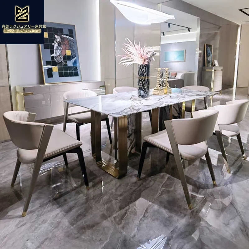 イタリアンラグジュアリー大理石長方形ダイニングテーブル&チェアセット|モダンな別荘にぴったりの高級 dining table|洗練されたデザインで上質な食卓を演出します!