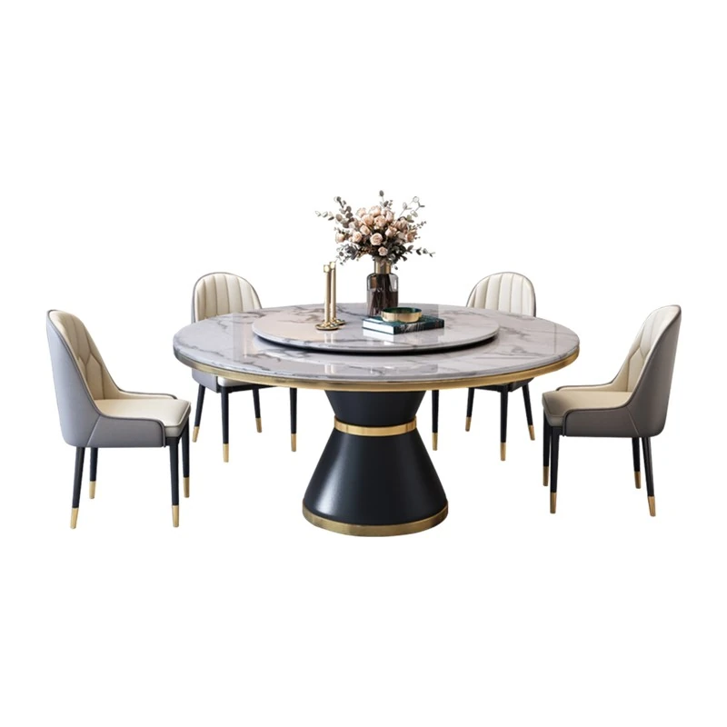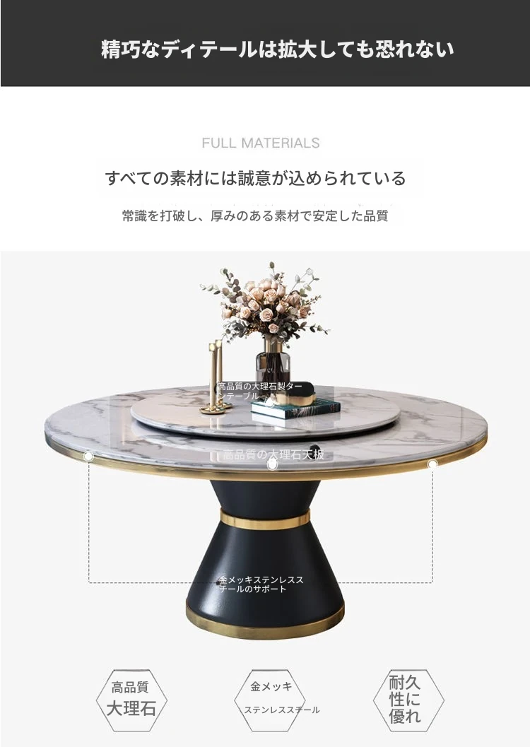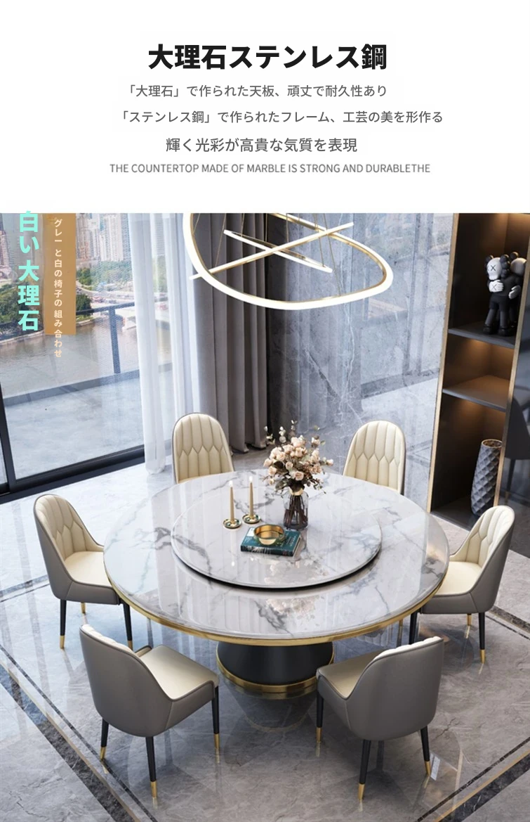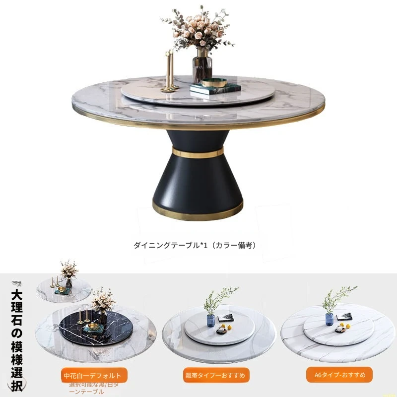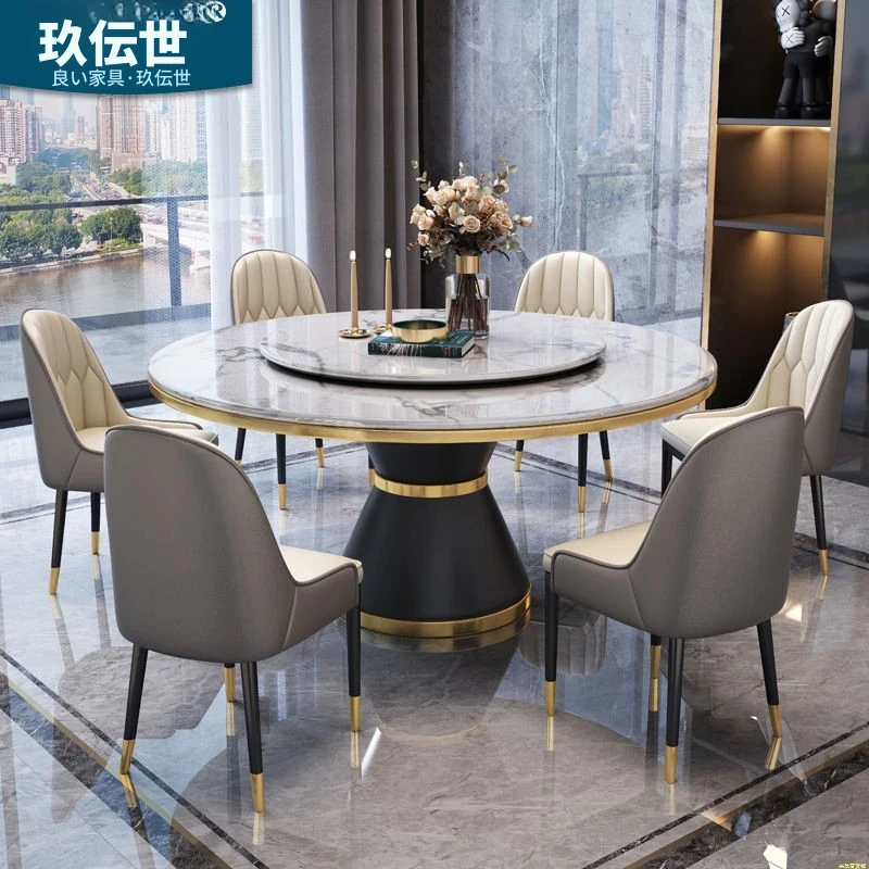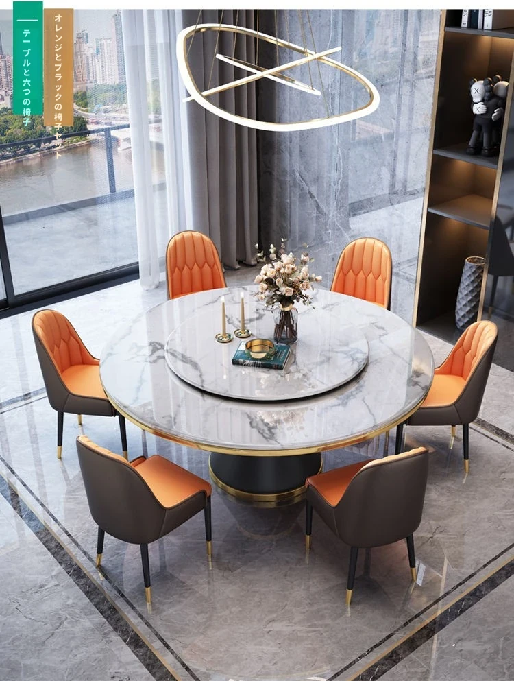 高級感溢れる軽奢岩板ダイニングテーブルセット - モダンな大理石製の円形火鍋テーブル、ホテルや家庭に最適!回転式プレート付きで、食事をもっと楽しめる!