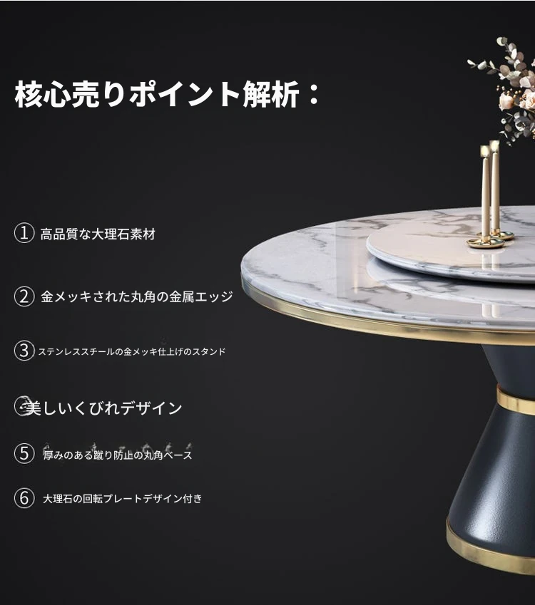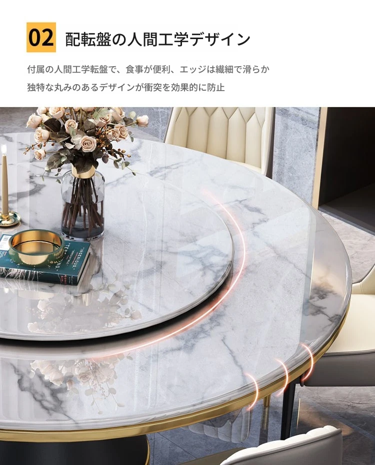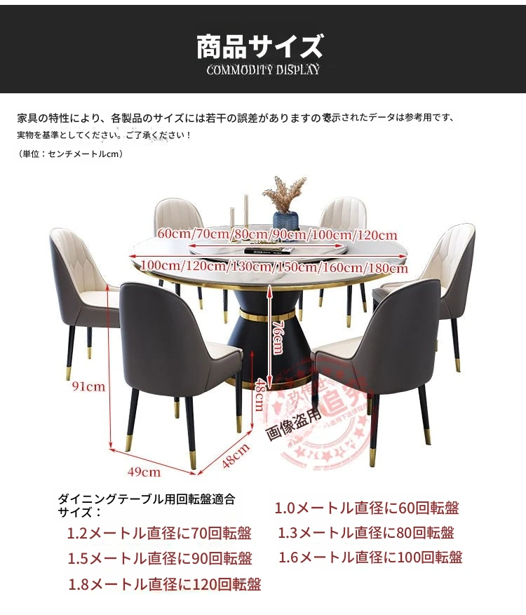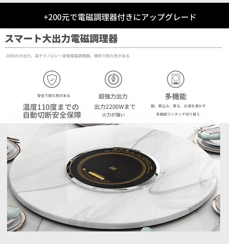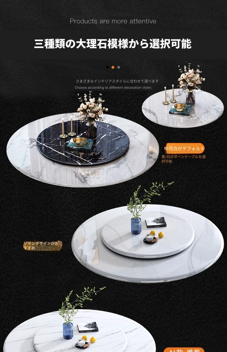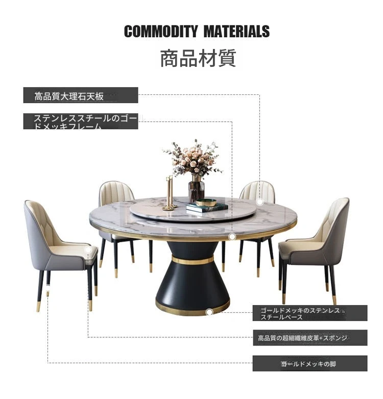 高級感溢れる軽奢岩板ダイニングテーブルセット - モダンな大理石製の円形火鍋テーブル、ホテルや家庭に最適!回転式プレート付きで、食事をもっと楽しめる!