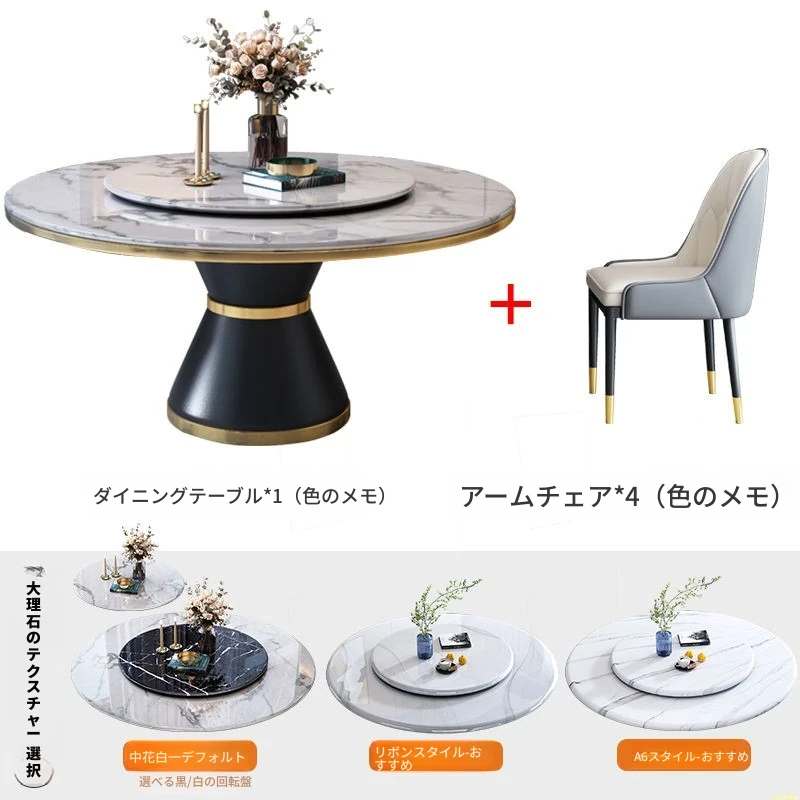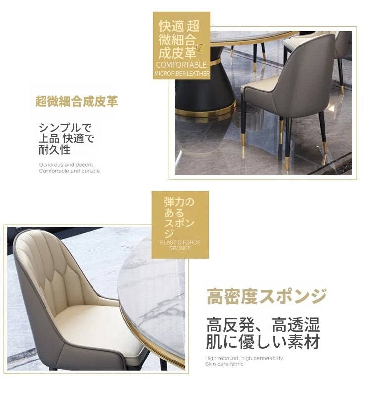 【18mm】801ラグジュアリー大理石円卓+4猫爪皮パイナップル椅子