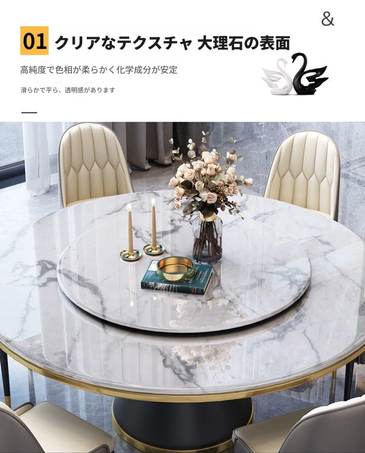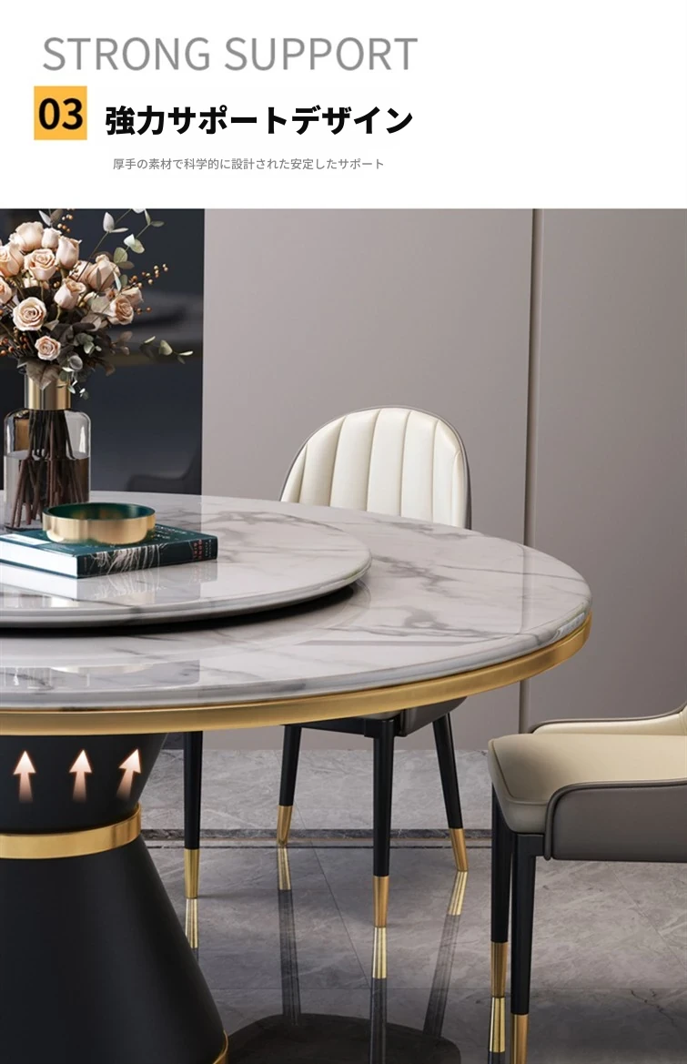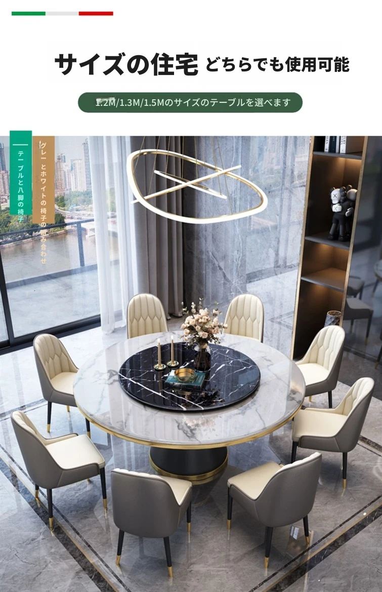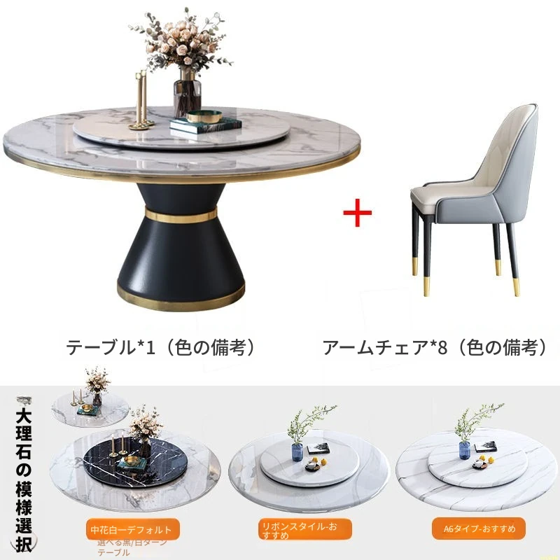 【18mm】801ラグジュアリー大理石円卓+10猫爪皮パイナップル椅子