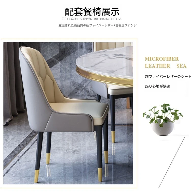 【18mm】801ラグジュアリー大理石円卓+6猫爪皮パイナップル椅子