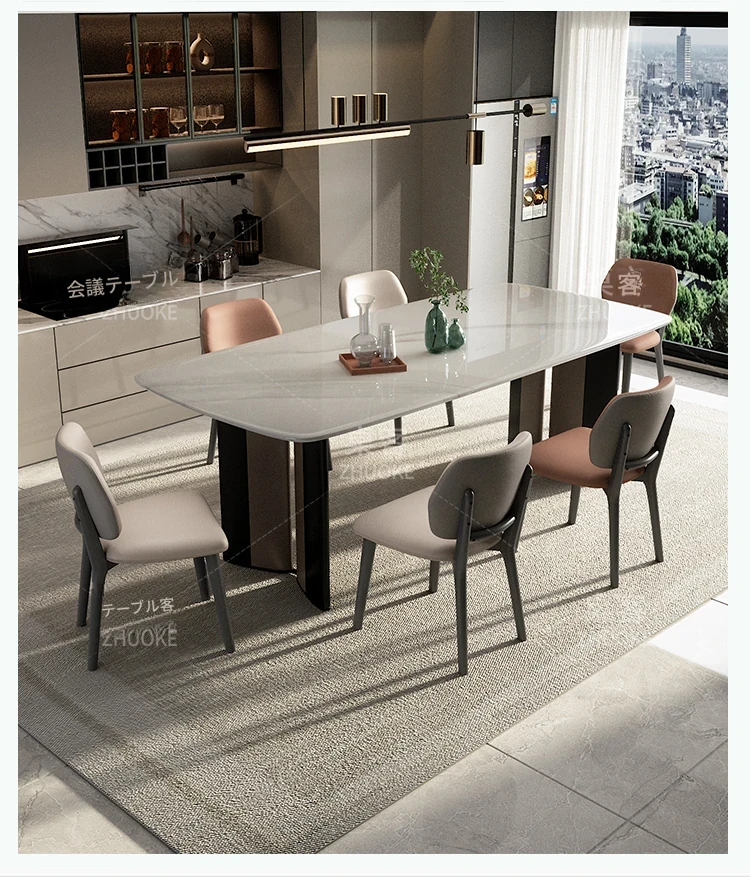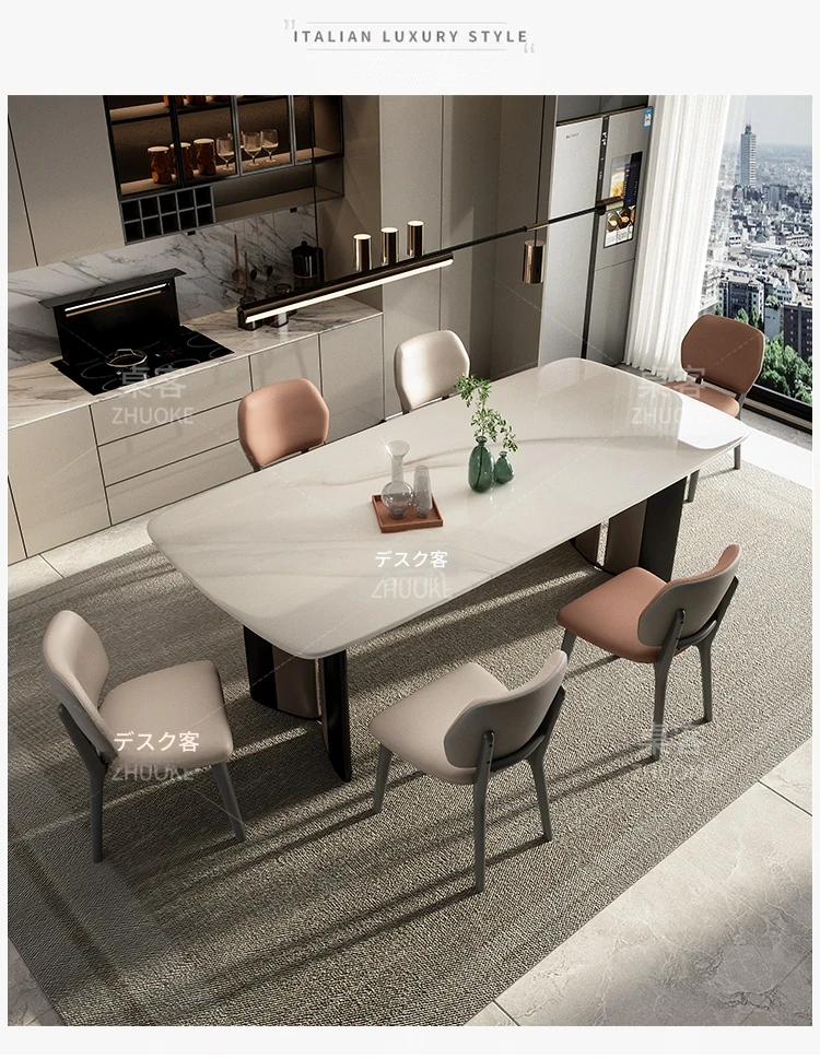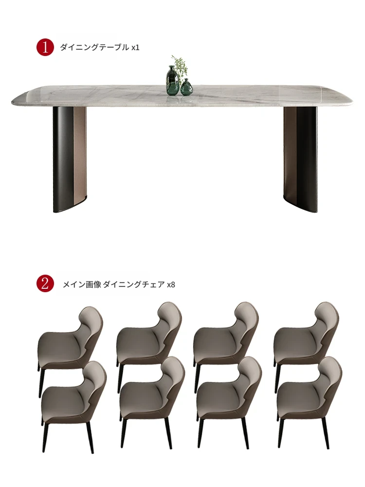 1テーブル8椅子(厚手フェイクレザー)【34MM厚手フルサポート無垢木ボード+航空アルミフレーム】