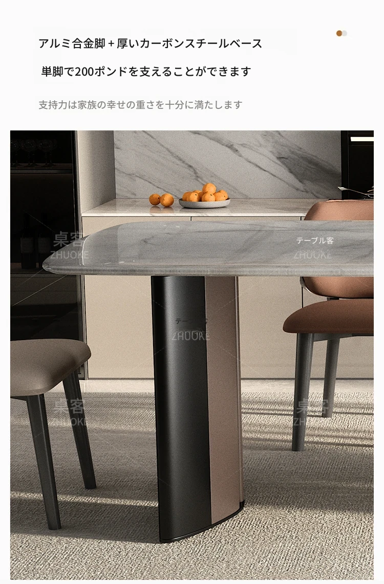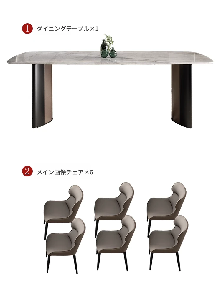 1テーブル6椅子(厚手フェイクレザー)【34MM厚手フルサポート無垢木ボード+航空アルミフレーム】