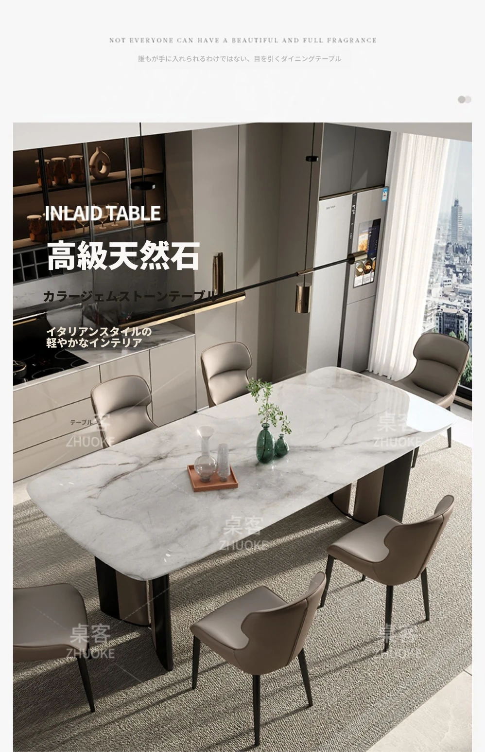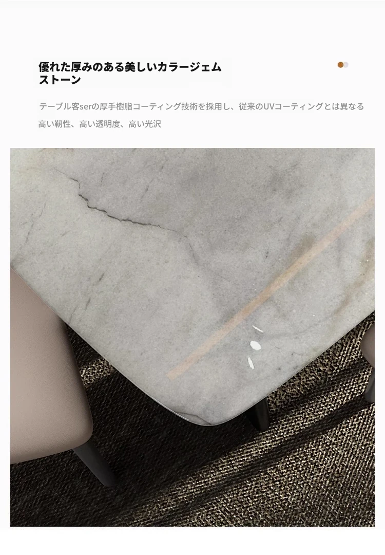 【ラグジュアリー石-天然カラージェムストーン】1テーブル6椅子(厚手フェイクレザー)