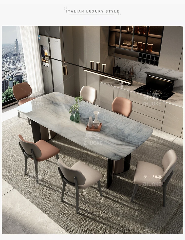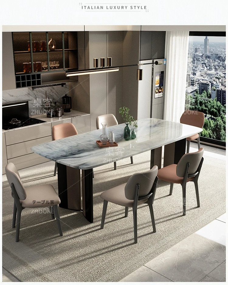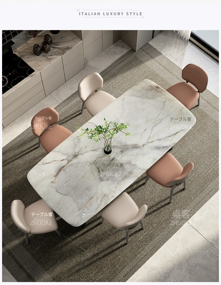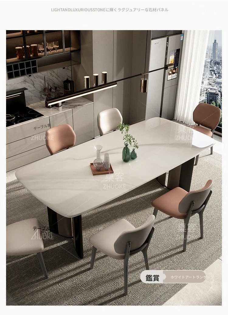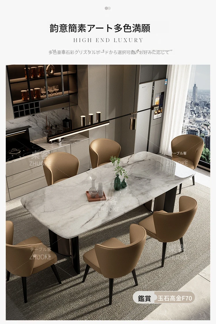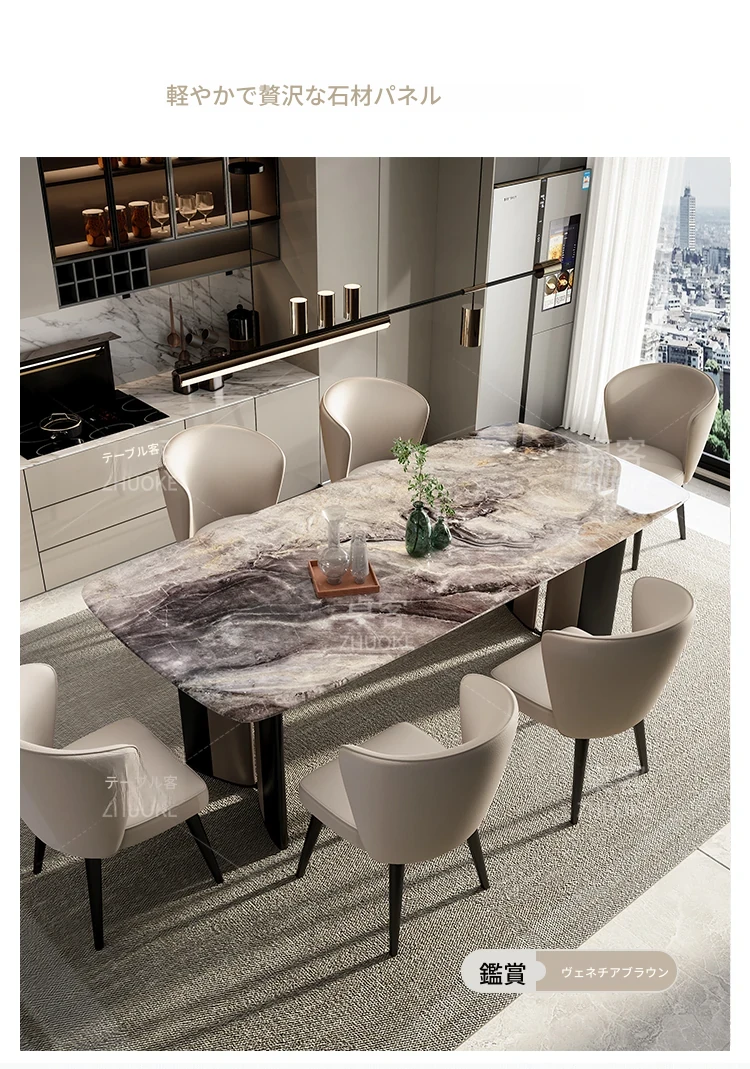 【ラグジュアリー石-天然カラージェムストーン】1テーブル8椅子(厚手フェイクレザー)