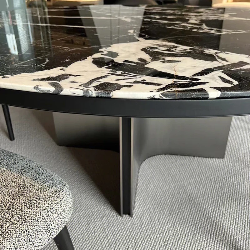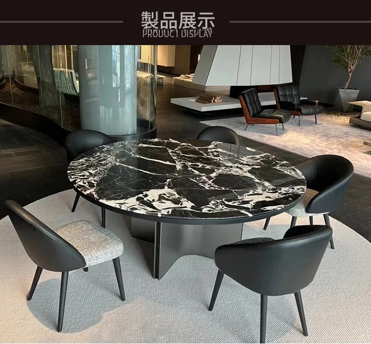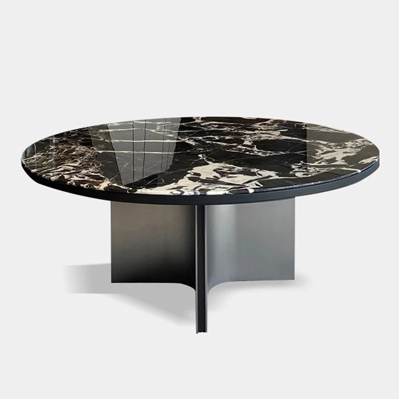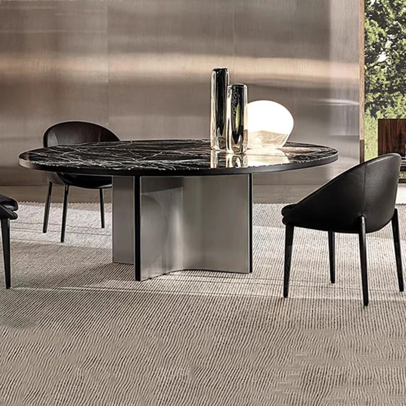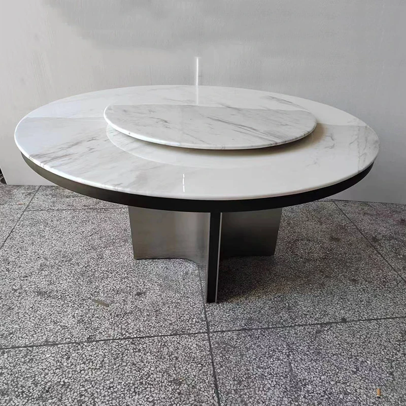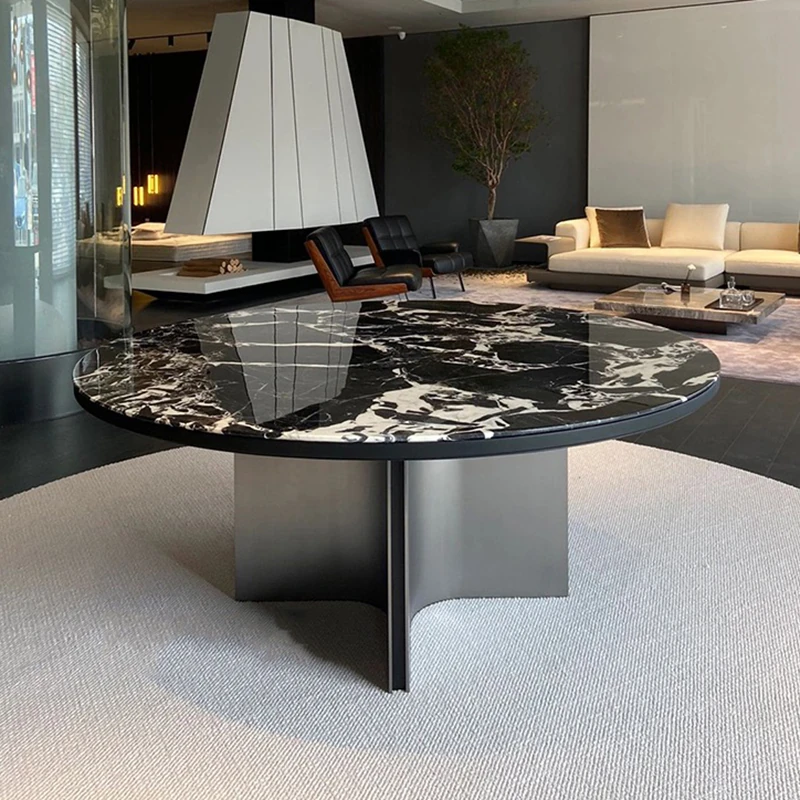 高級感溢れる大理石のラウンドテーブル - イタリアンデザインのステンレス製ダイニングテーブル、6人用。おしゃれなリビングにぴったりな、軽やかなラグジュアリーを演出します!