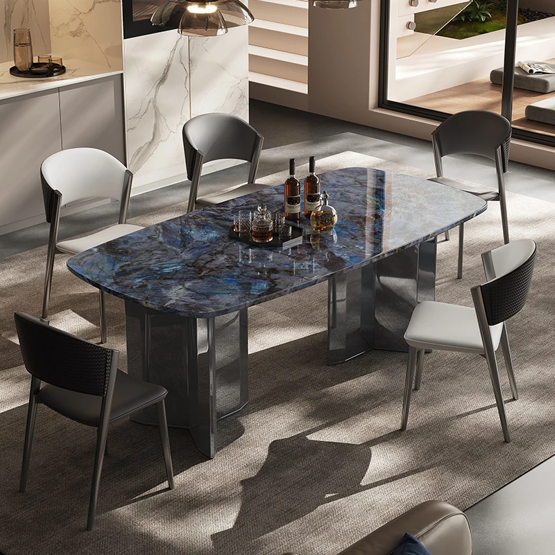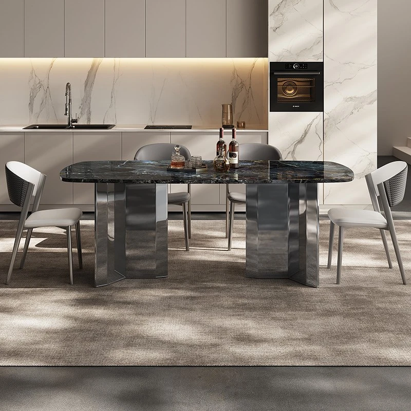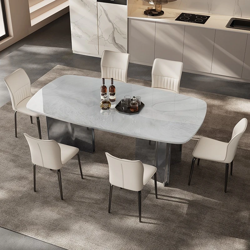 馨佰利の高級感あふれるミクロクリスタル石製ダイニングテーブル&チェアセット - 小型住宅に最適なイタリアンスタイルの大理石風正方形テーブル!快適な食事時間を演出します。