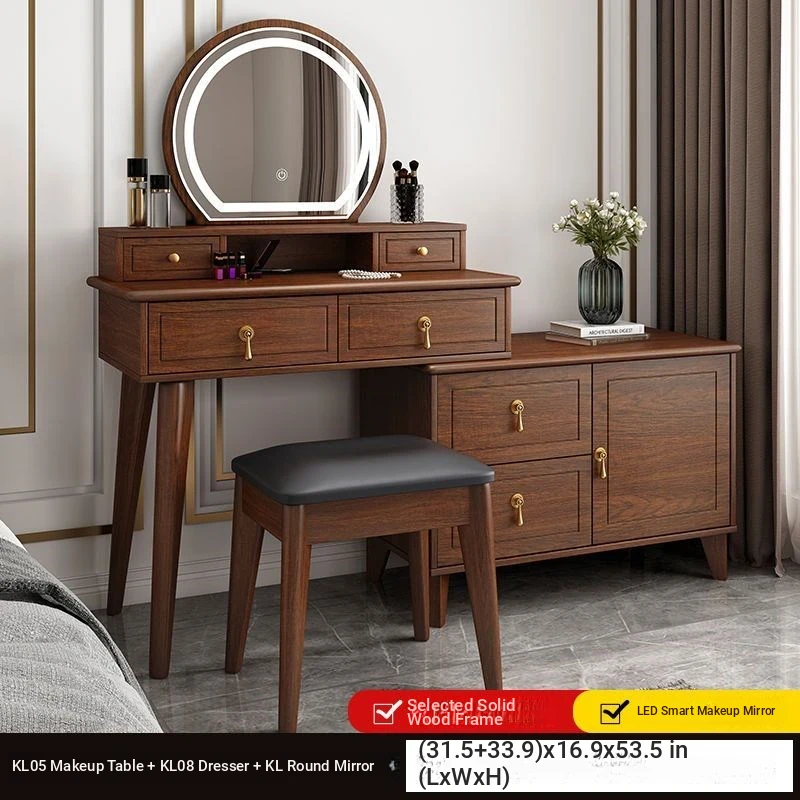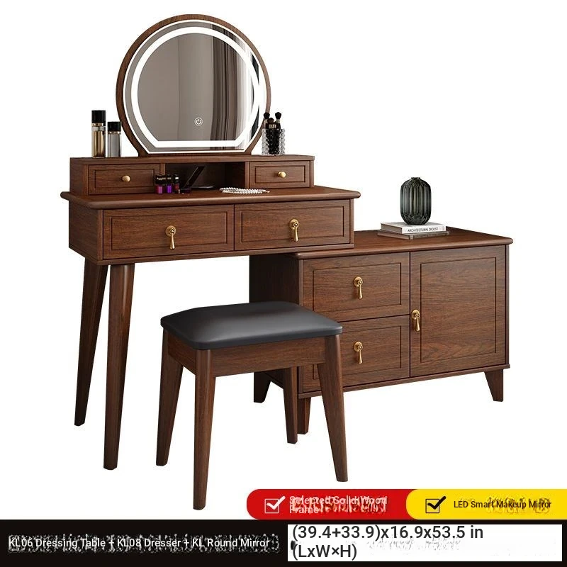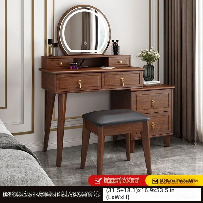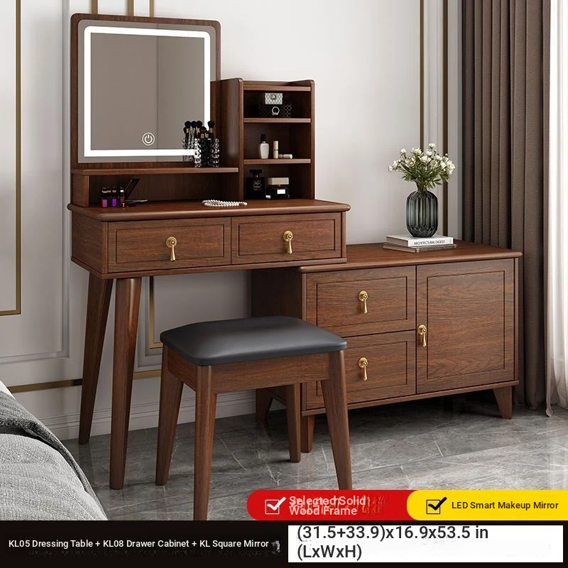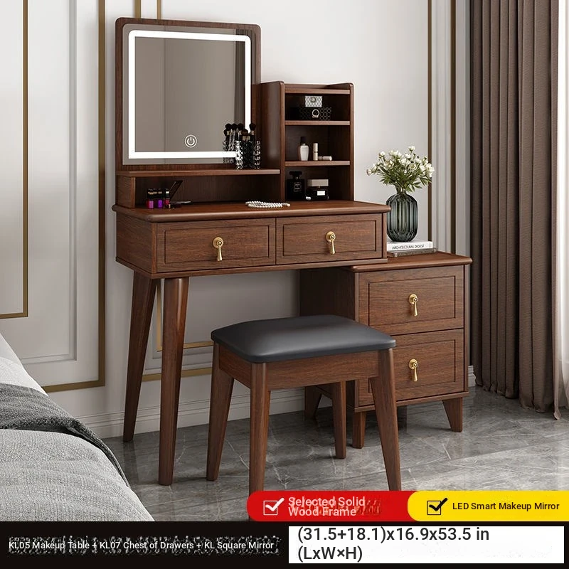 Elegant Modern Chinese Style Makeup Vanity Table with Storage Cabinet - Solid Wood Bedroom Dressing Table for a Chic and Organized Space