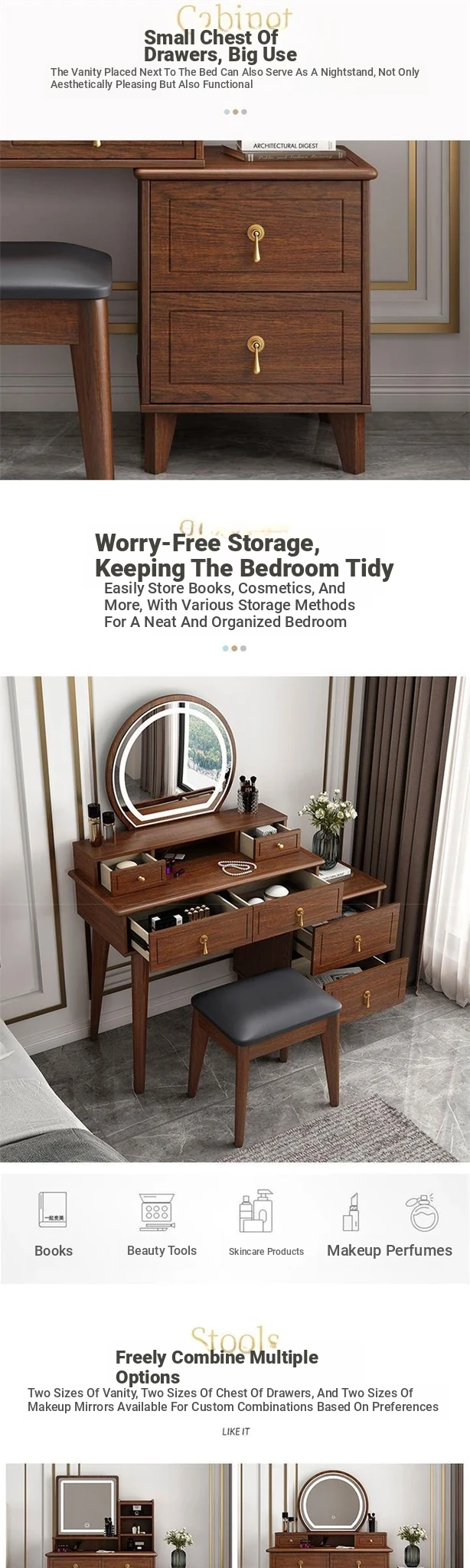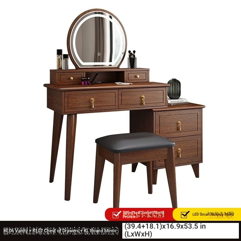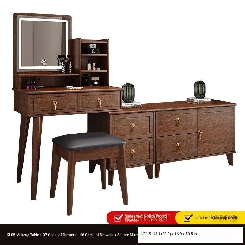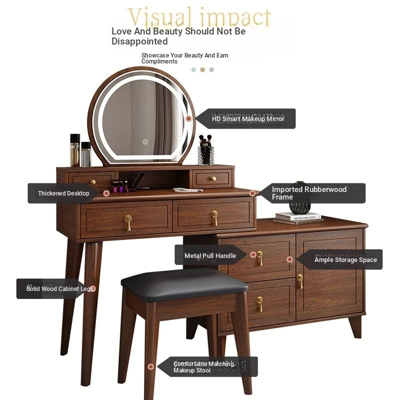 Elegant Modern Chinese Style Makeup Vanity Table with Storage Cabinet - Solid Wood Bedroom Dressing Table for a Chic and Organized Space