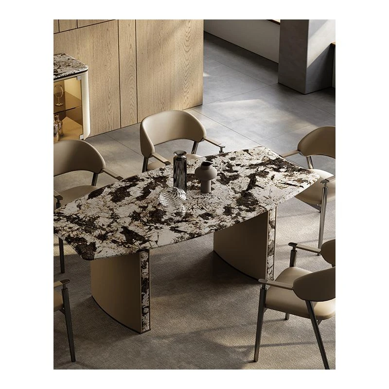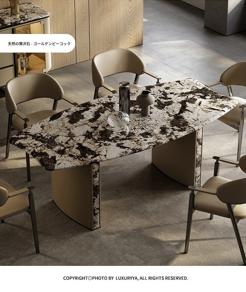 2.0メートルのダイニングテーブル/金孔雀大理石