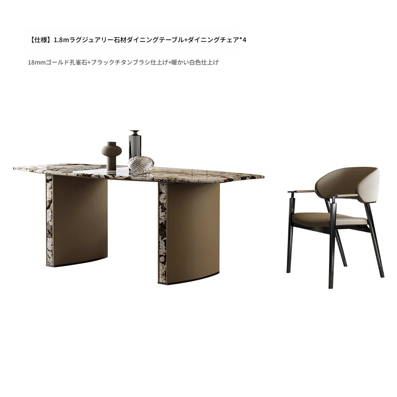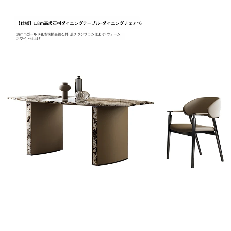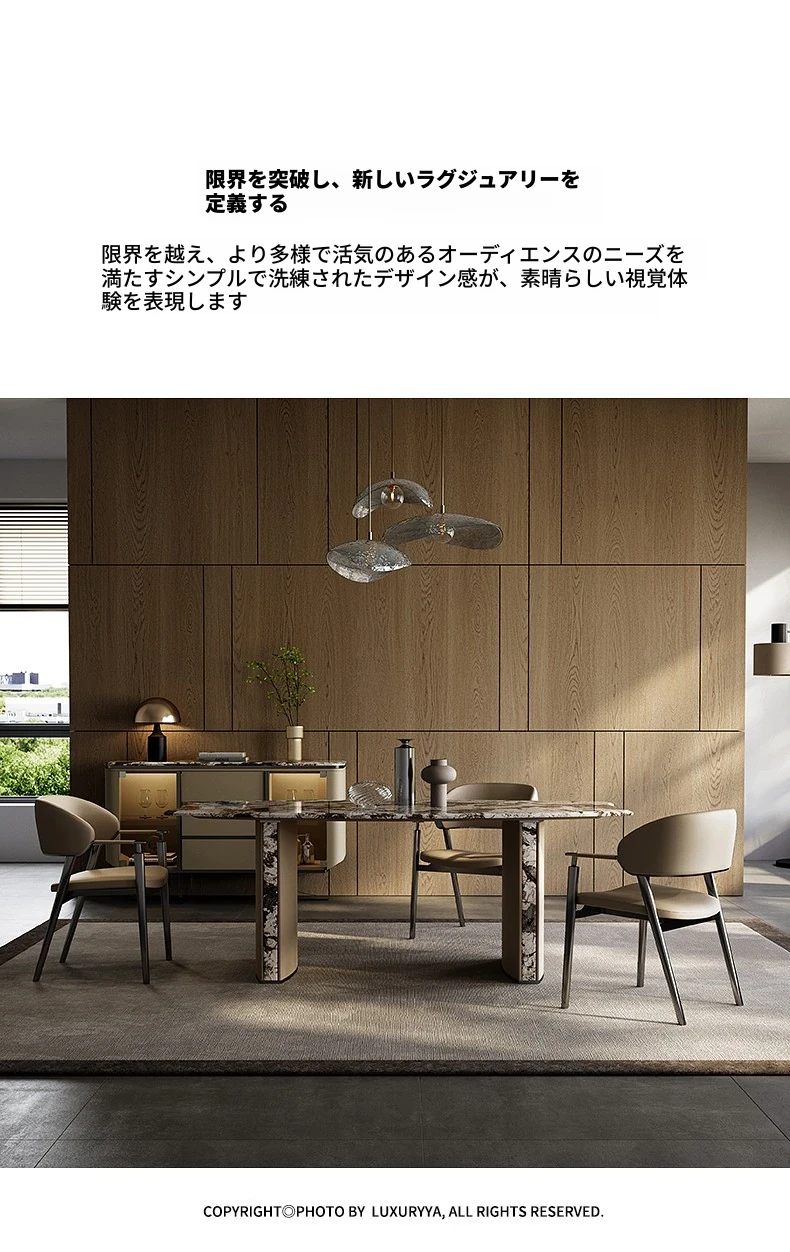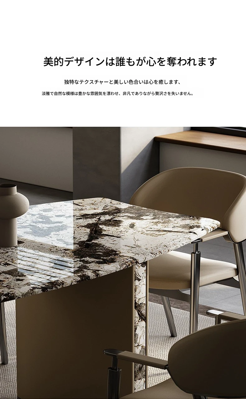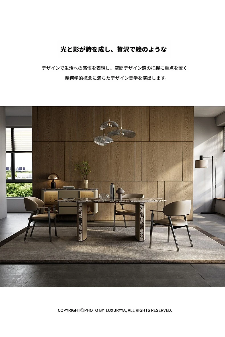 軽やかな贅沢感を演出する天然石製ダイニングテーブル&チェアセット - シンプルで洗練された北欧スタイルの長方形デザイン、高級大理石使用でおしゃれな食卓を演出!