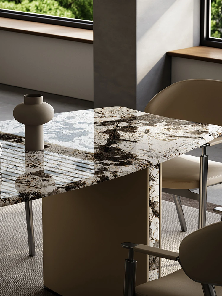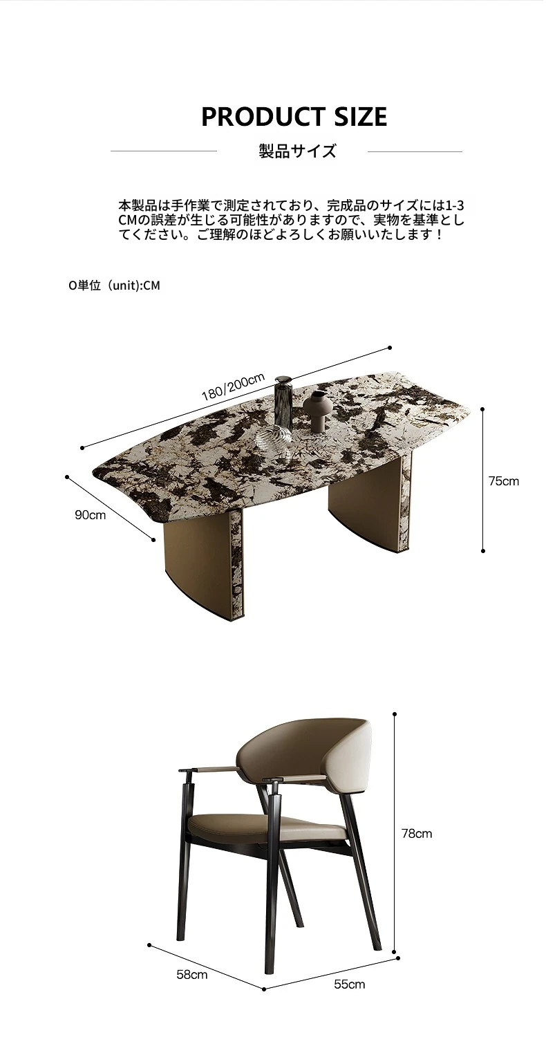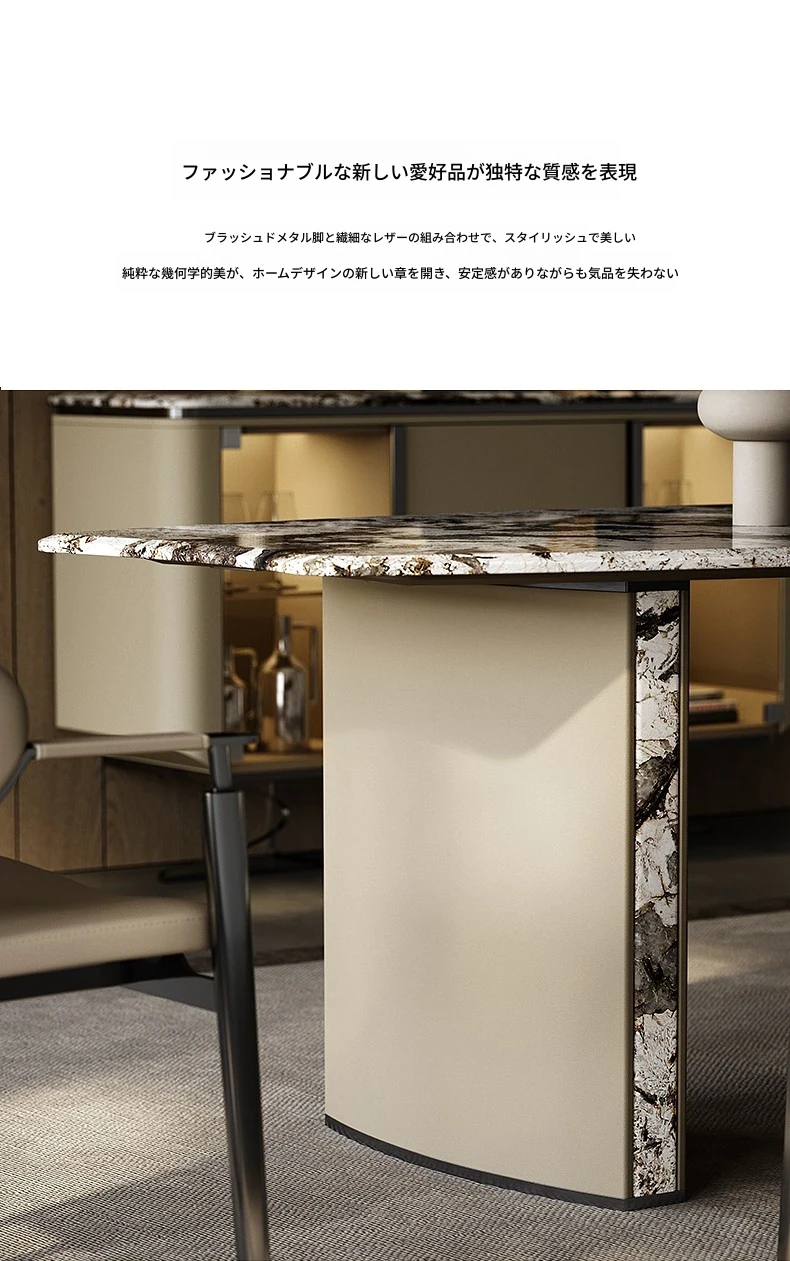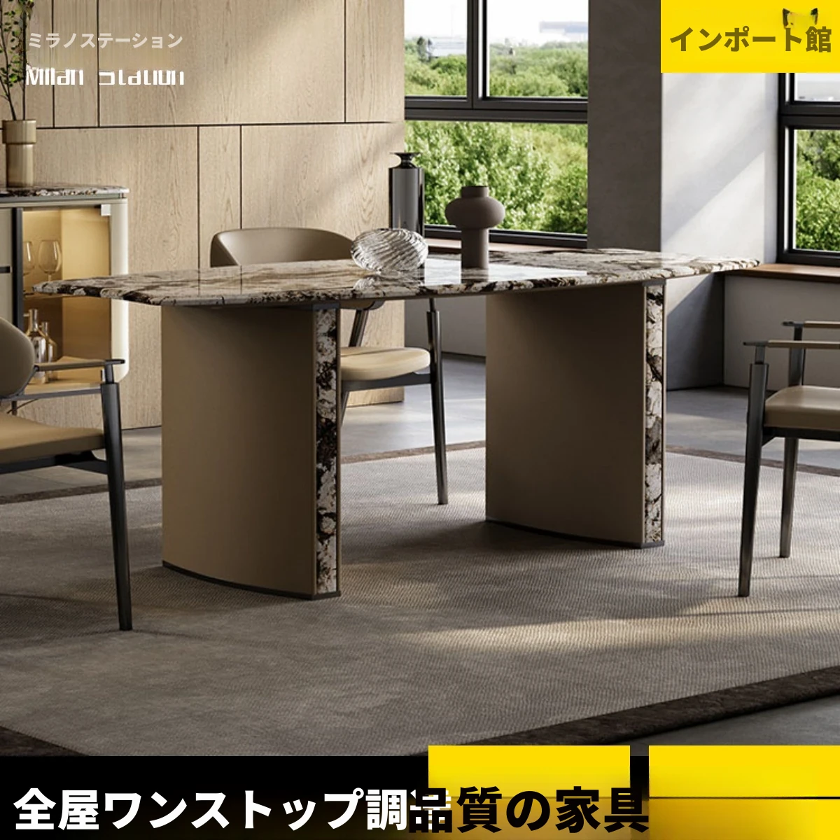 軽やかな贅沢感を演出する天然石製ダイニングテーブル&チェアセット - シンプルで洗練された北欧スタイルの長方形デザイン、高級大理石使用でおしゃれな食卓を演出!