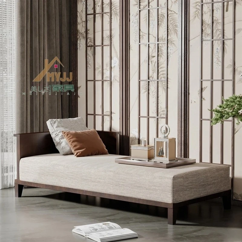 新中式スタイルの無垢材貴妃椅子 - リビングや寝室にぴったりな優雅なデザイン!接客やリラックスに最適なソファとテーブルセット。ホワイトアッシュの温かみある木の質感で、心地よい空間を演出します。
