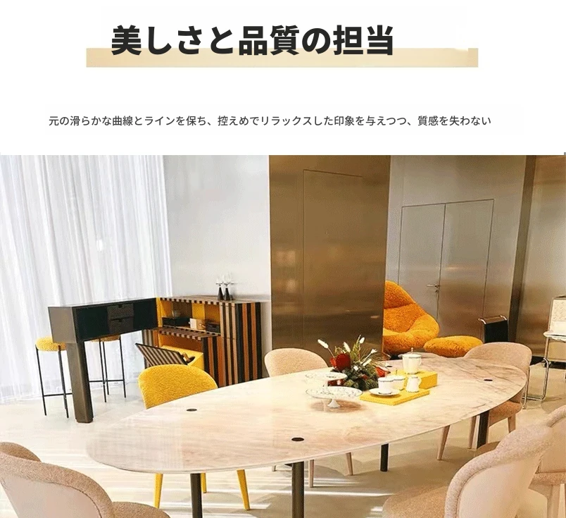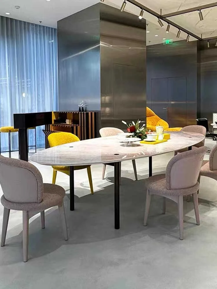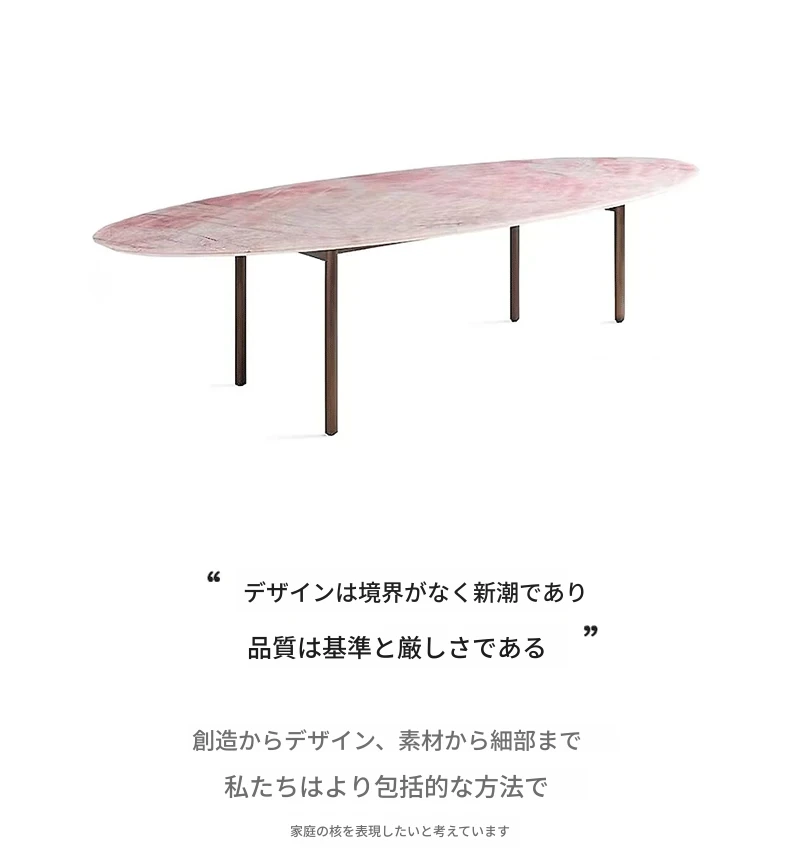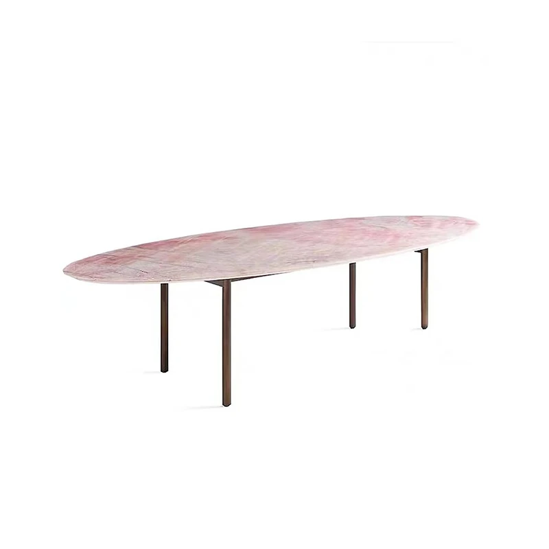 軽やかで上質なピンクの大理石ダイニングテーブル - シンプルなデザインのイタリアンスタイル、エレガントな楕円形、別荘や家庭に最適!