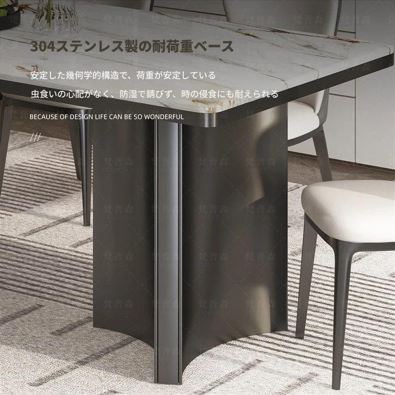 【ホワイトダイヤモンド】天然ミクロクリスタル石のダイニングテーブル+セントバーナードチェア*6