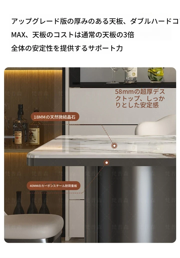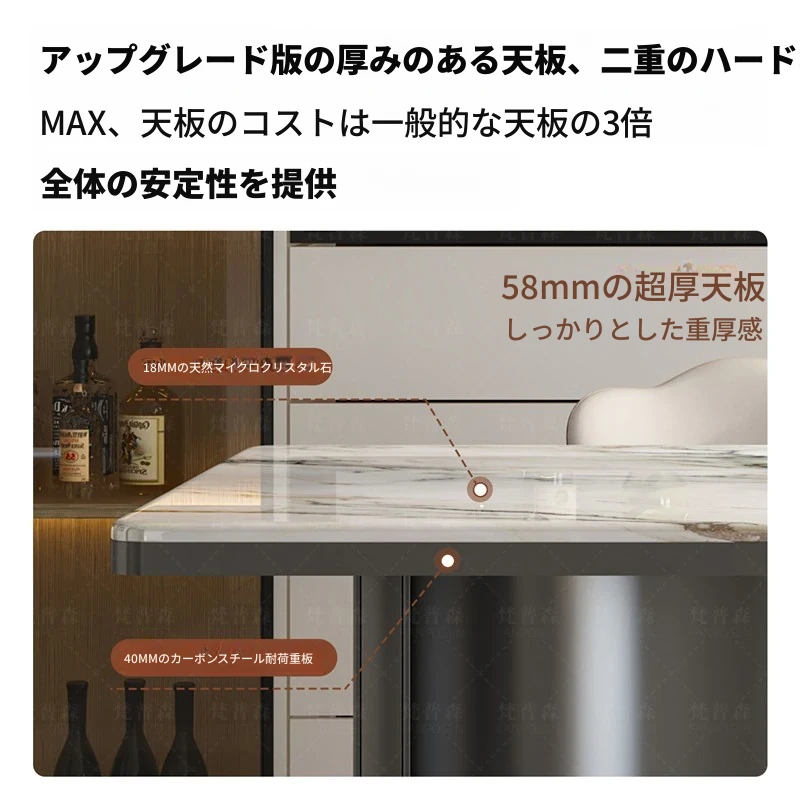 【ホワイトダイヤモンド】天然ミクロクリスタル石のダイニングテーブル