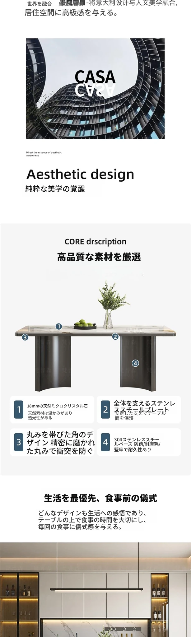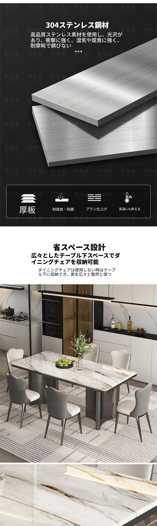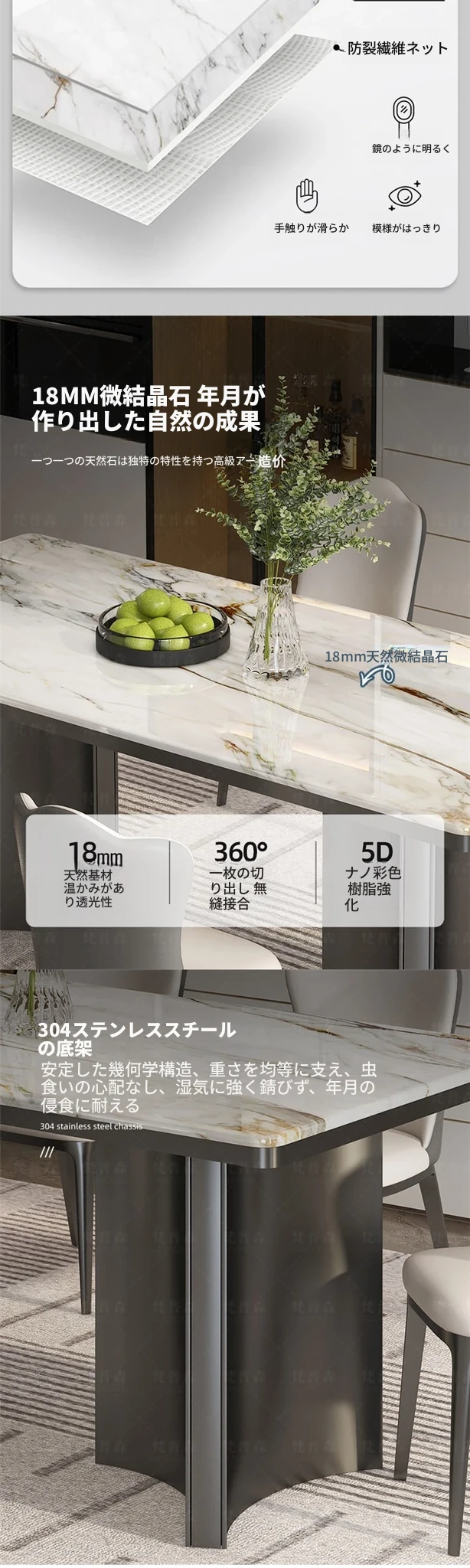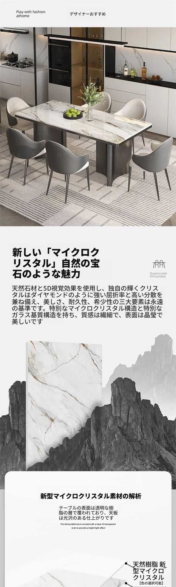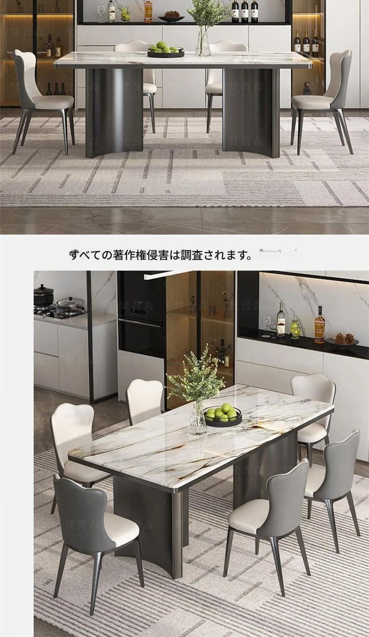 2024年新作!高級感あふれる天然大理石長方形ダイニングテーブル&チェアセット - 微晶石と超晶石の美しいコラボレーション。おしゃれで洗練された空間を演出し、特別なひとときをお楽しみください。