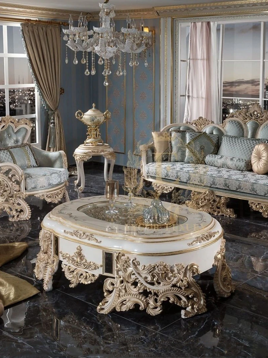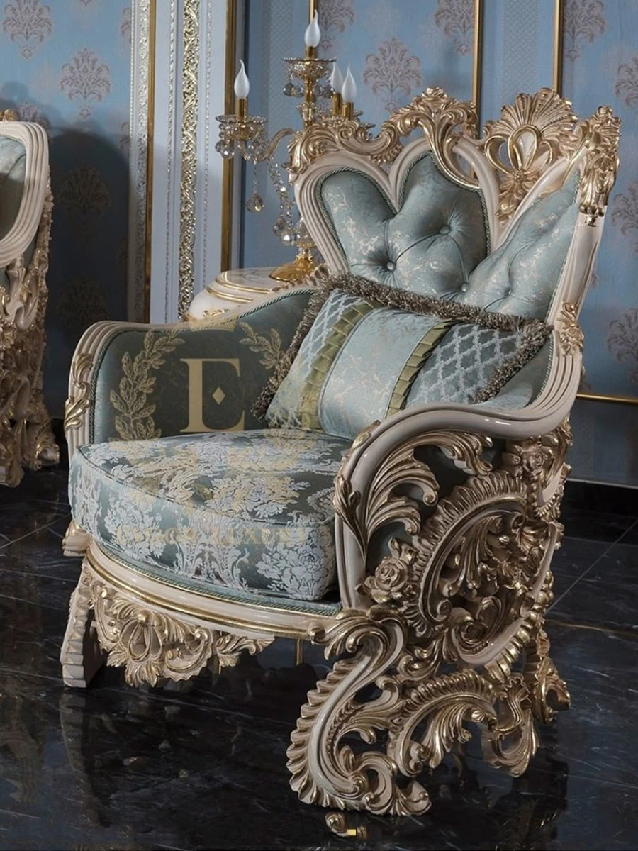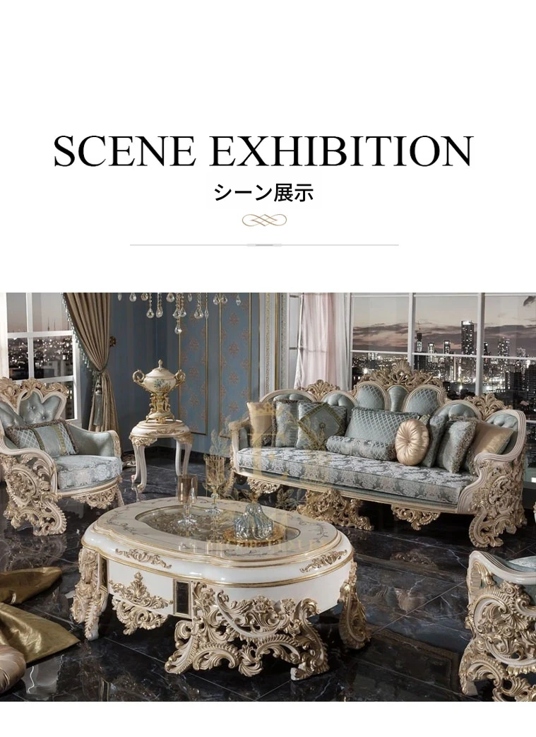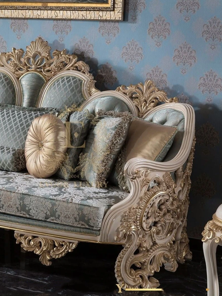 欧風ラグジュアリー無垢材ソファセット1234、宮廷スタイルの別荘用、天然木の彫刻が施されたフランス風の高級リビング家具。優雅な空間を演出し、特別なひとときを提供します。