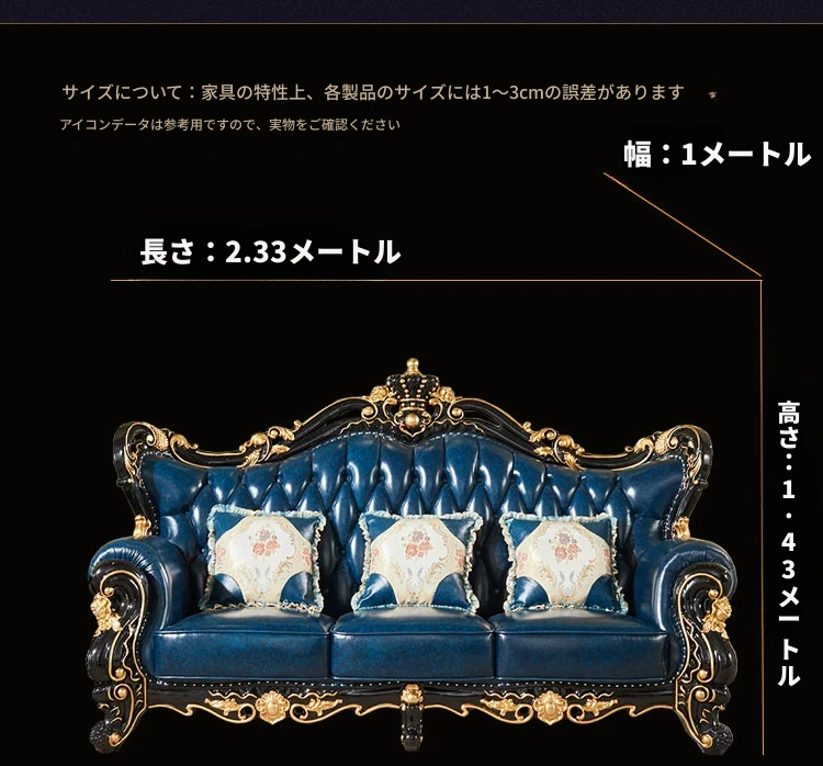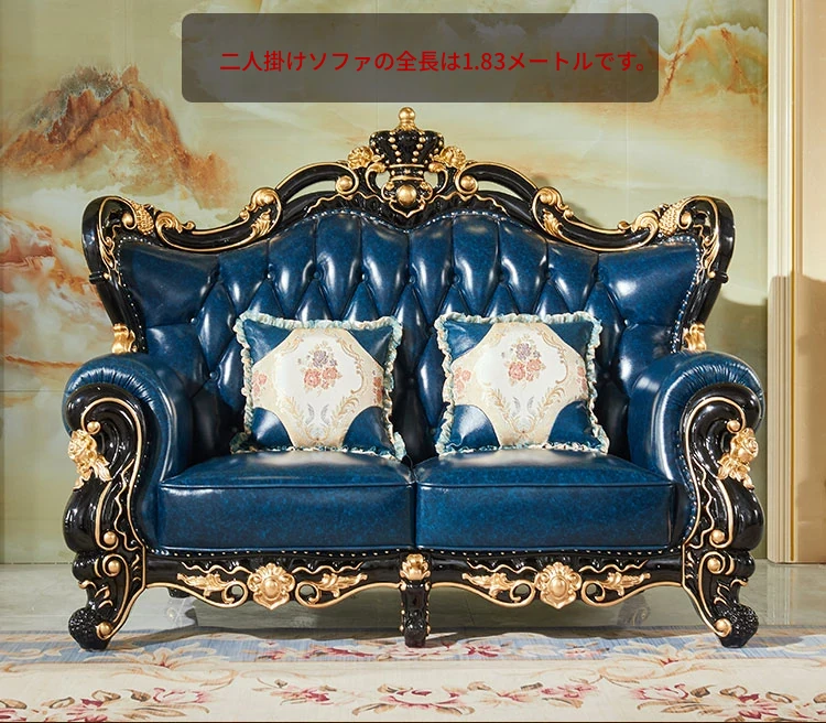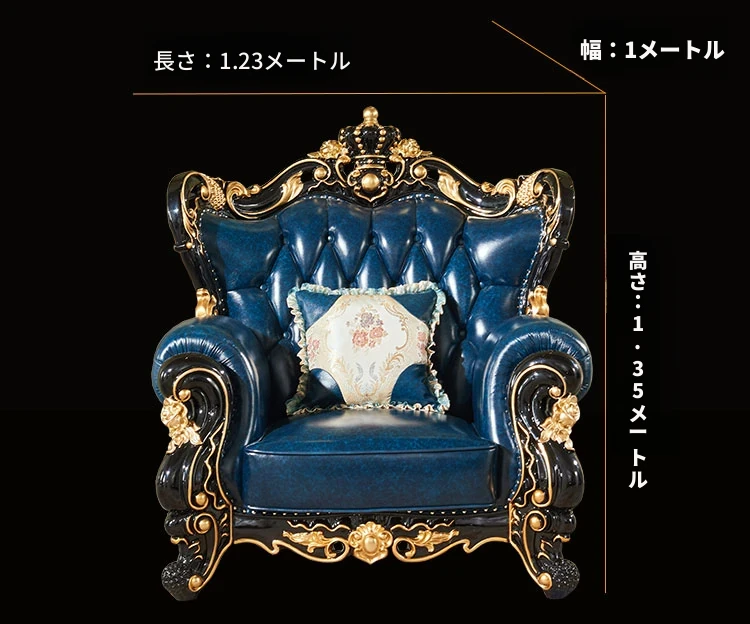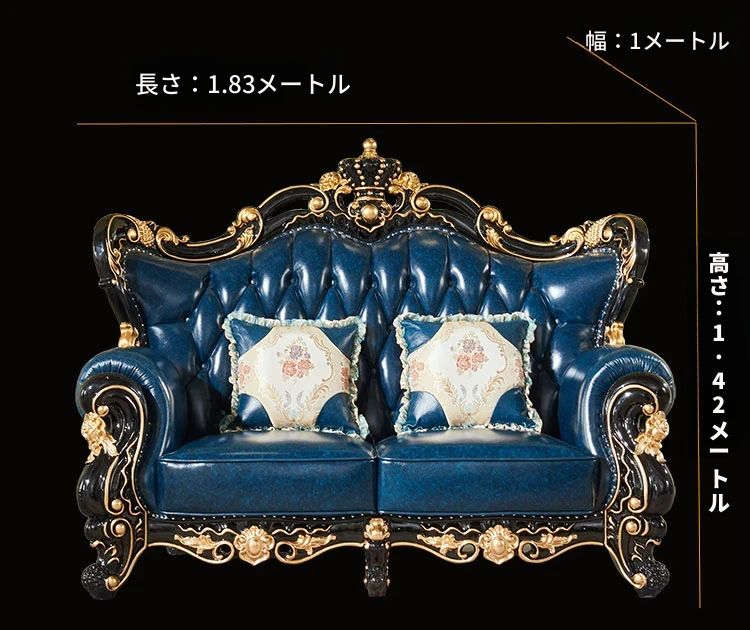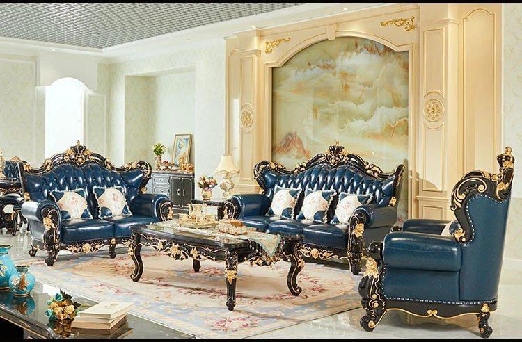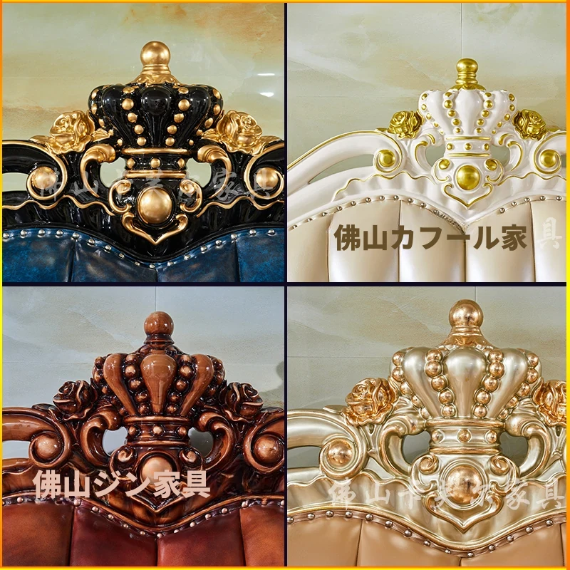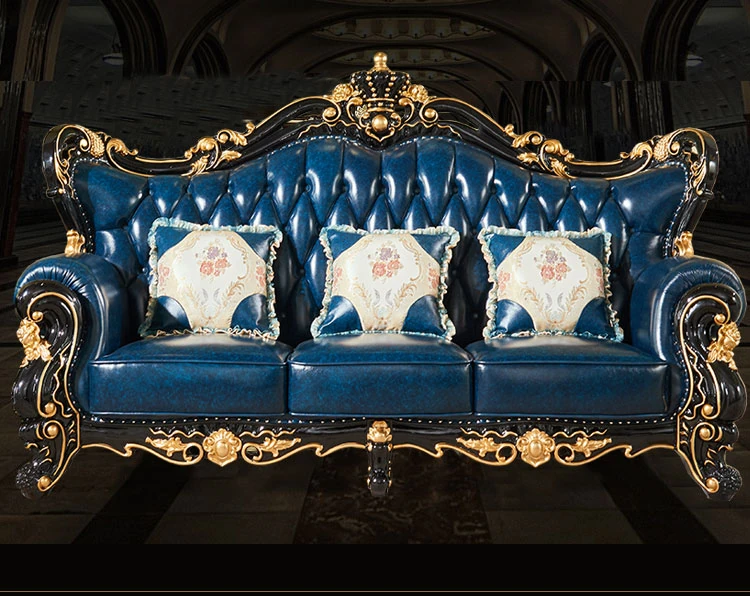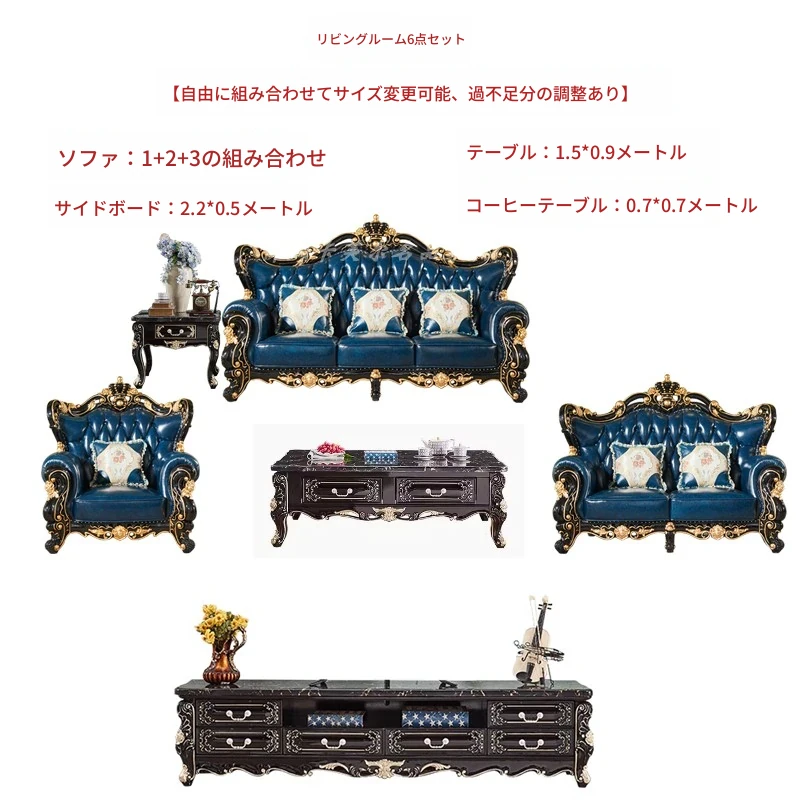 ヨーロピアンスタイルの本革123コンビネーションソファー - 軽やかなラグジュアリー、別荘のリビングに最適な高級実木彫刻の宮廷クラウンソファーで、極上の贅沢をお楽しみください!