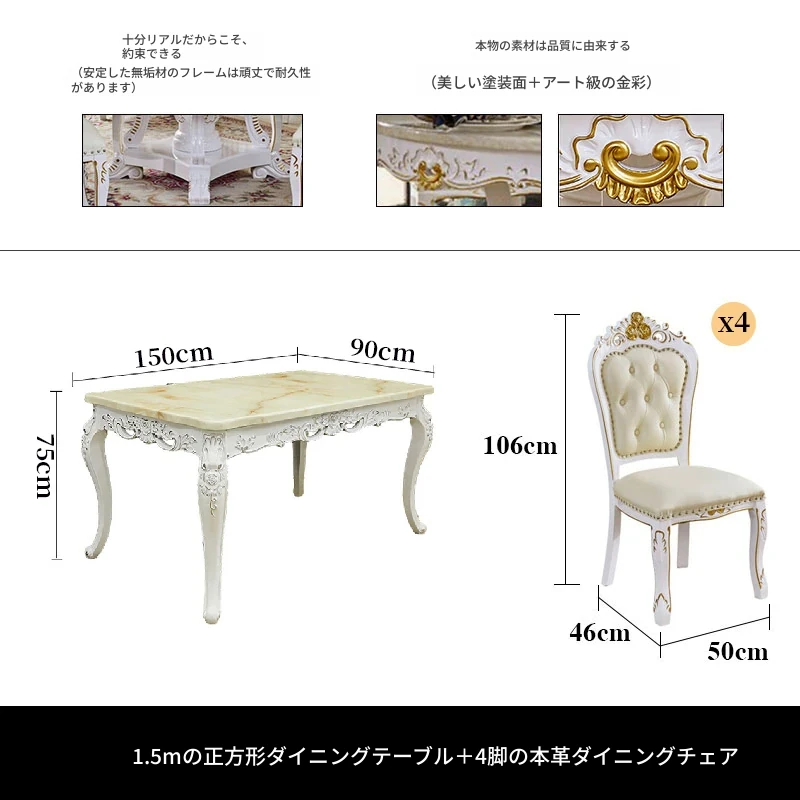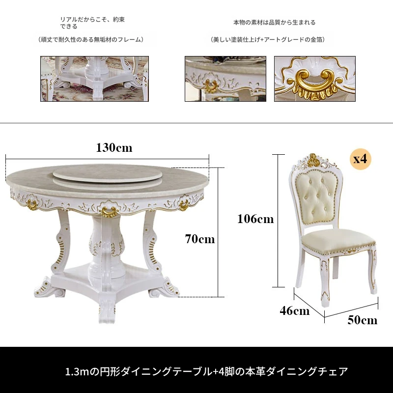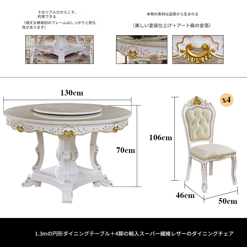 1.3メートル円形ダイニングテーブル+4脚の本革ダイニングチェア