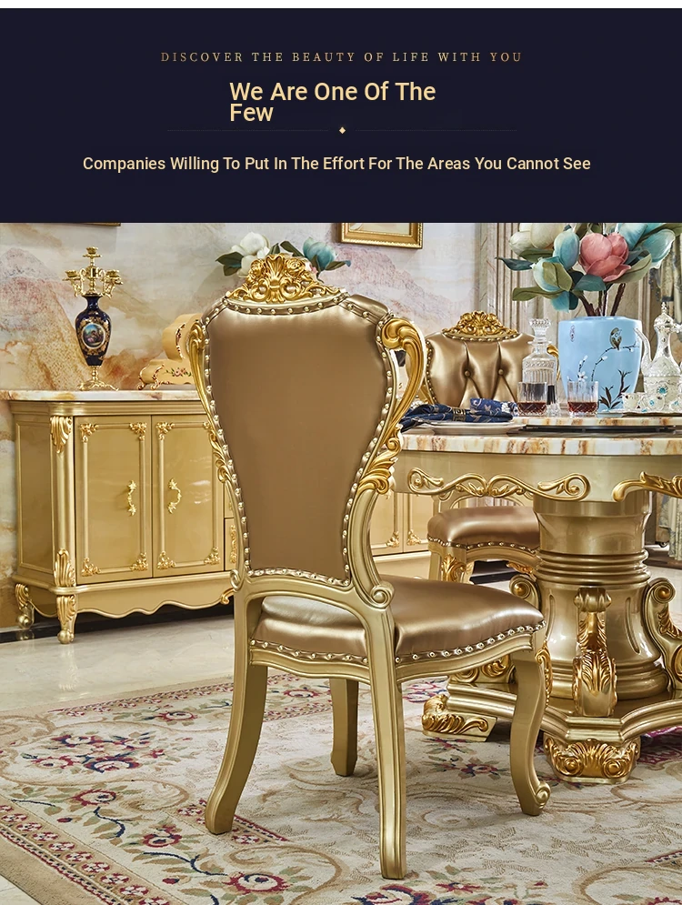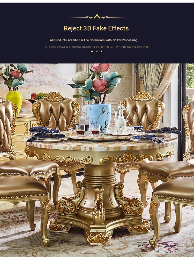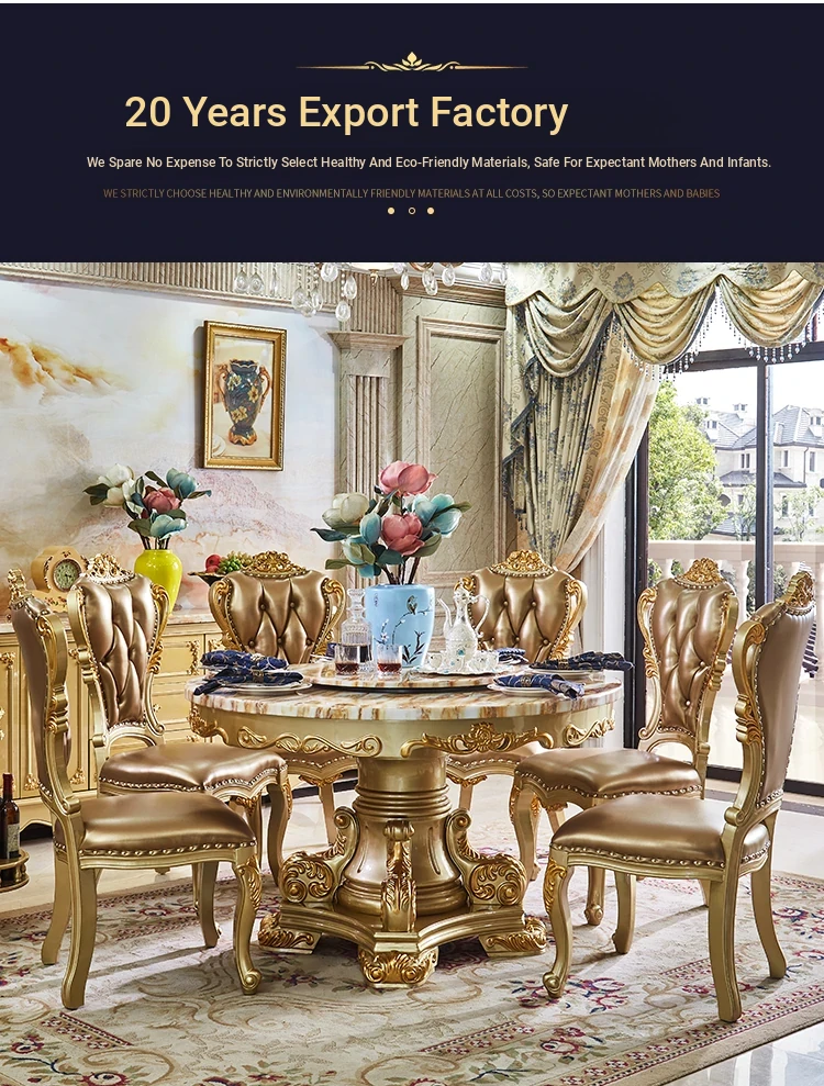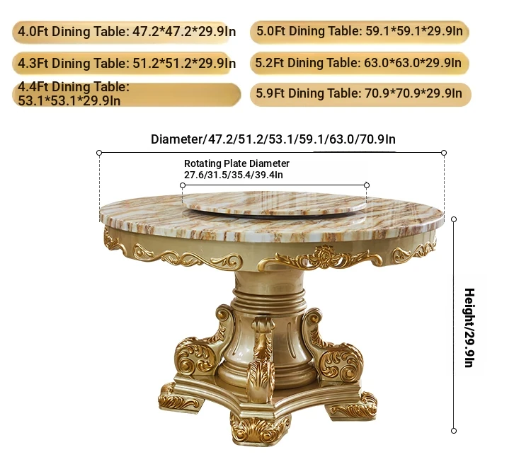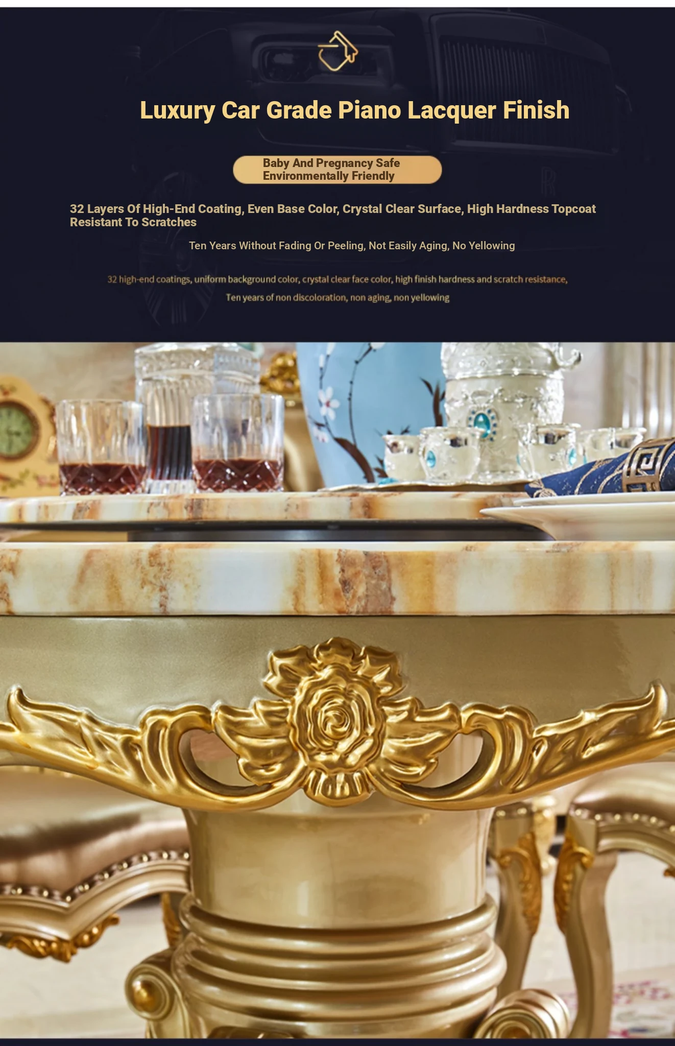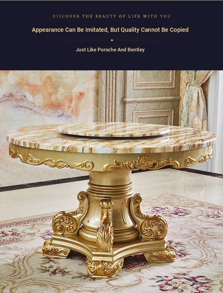 European Style Marble Top Solid Wood Dining Table and Chair Set - Round Table with Lazy Susan for Small Spaces, Ideal for Home Dining