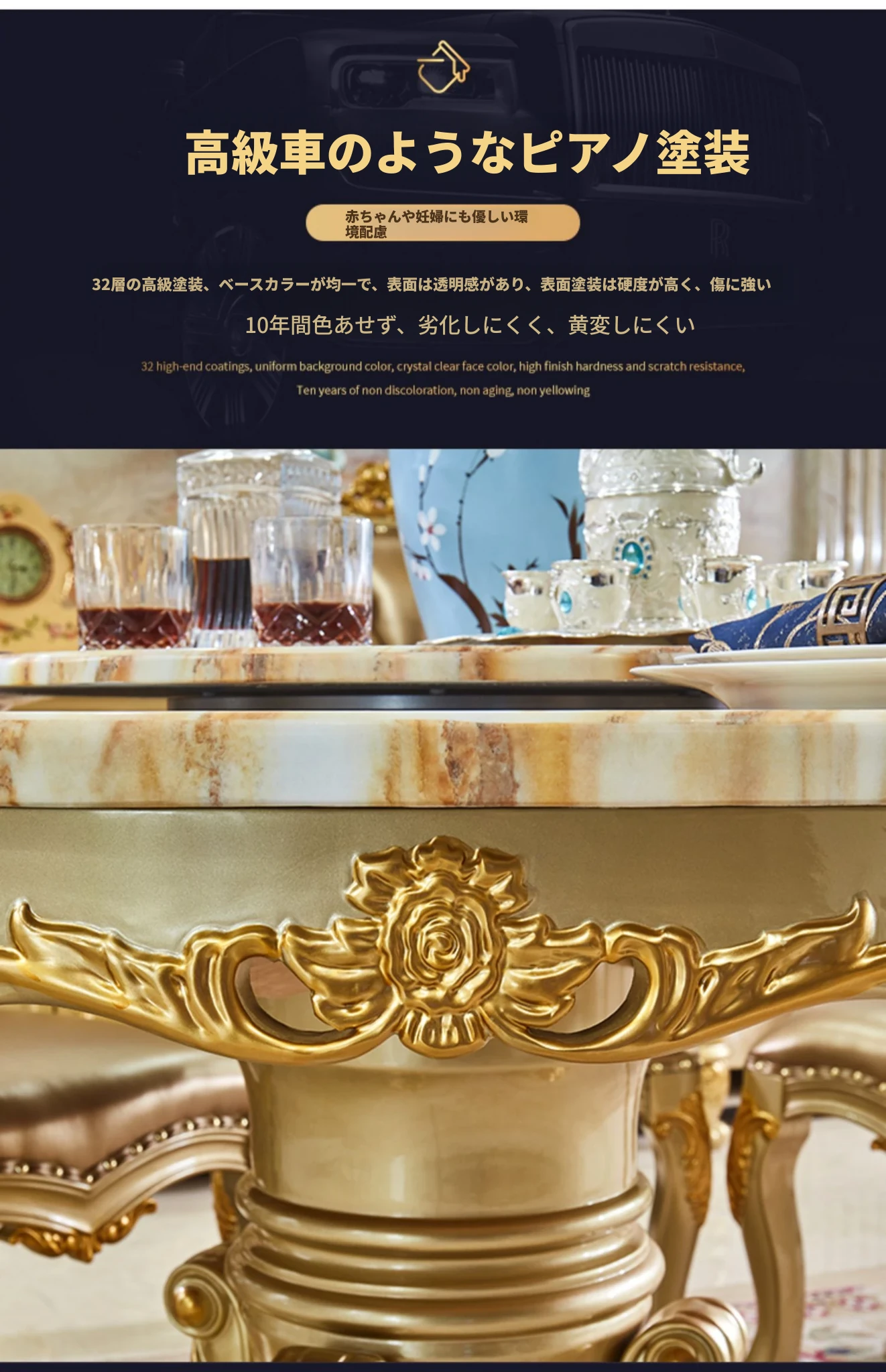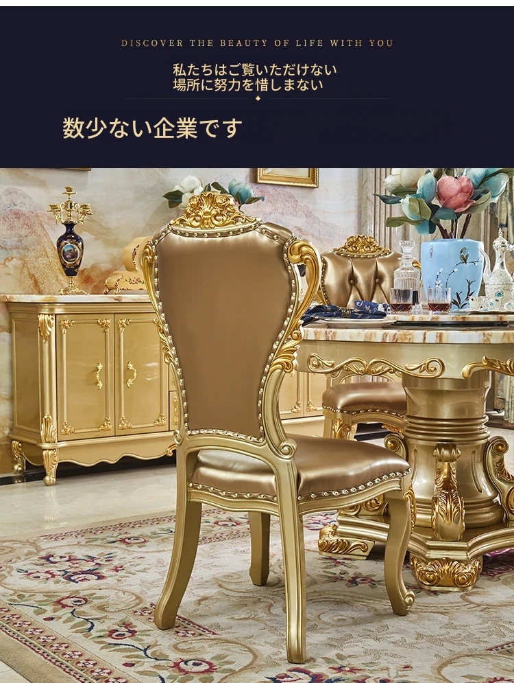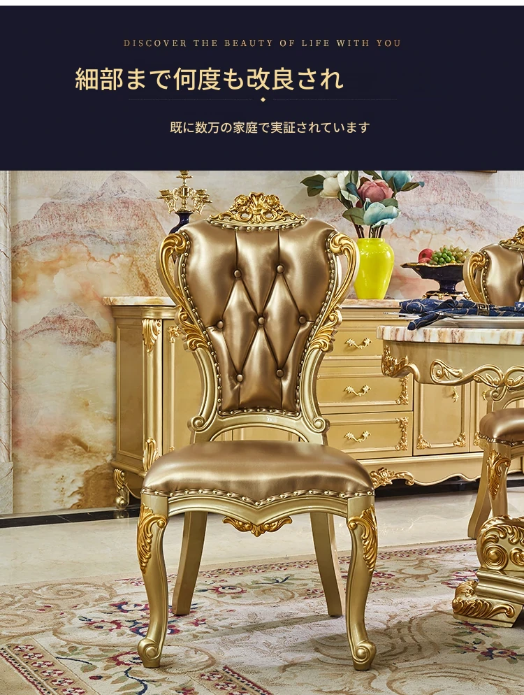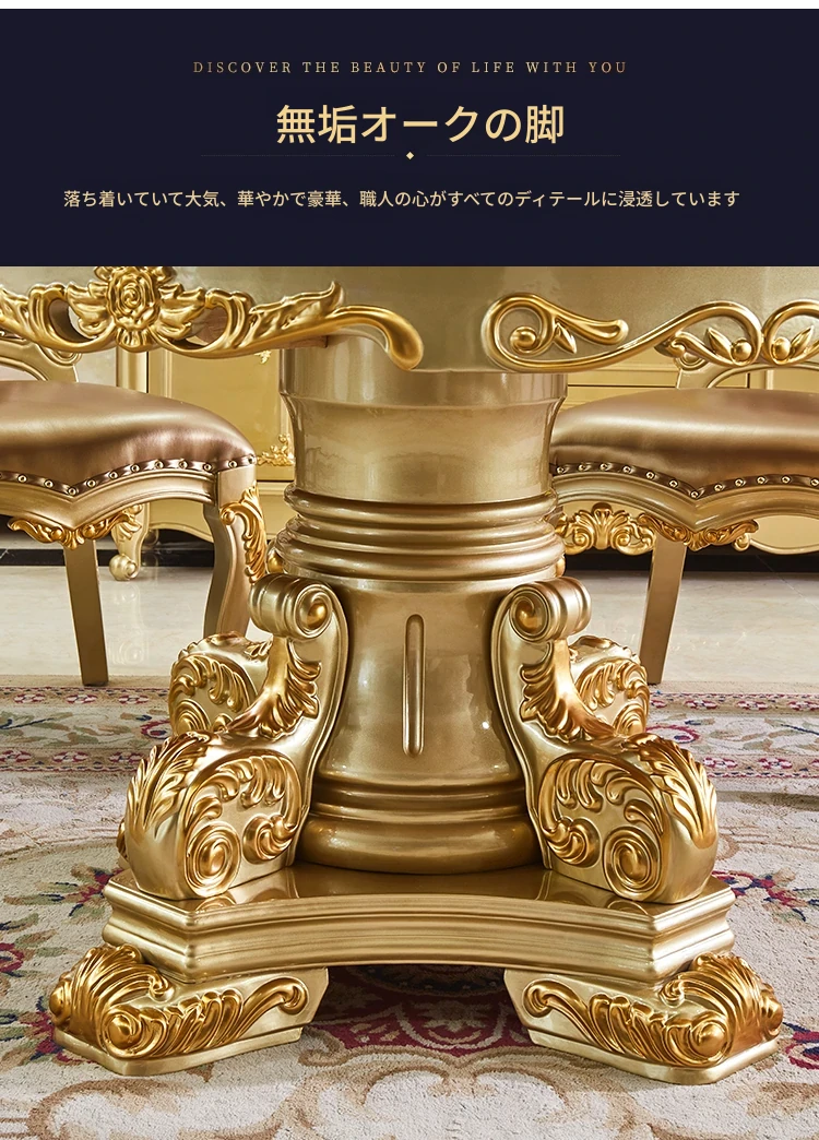 エレガントな欧風デザインのダイニングテーブルセット!天然大理石と無垢材を使用したラウンドテーブル。小型の食堂にぴったりで、回転台付きで便利。家族や友人との楽しい食事に最適なアイテムです!