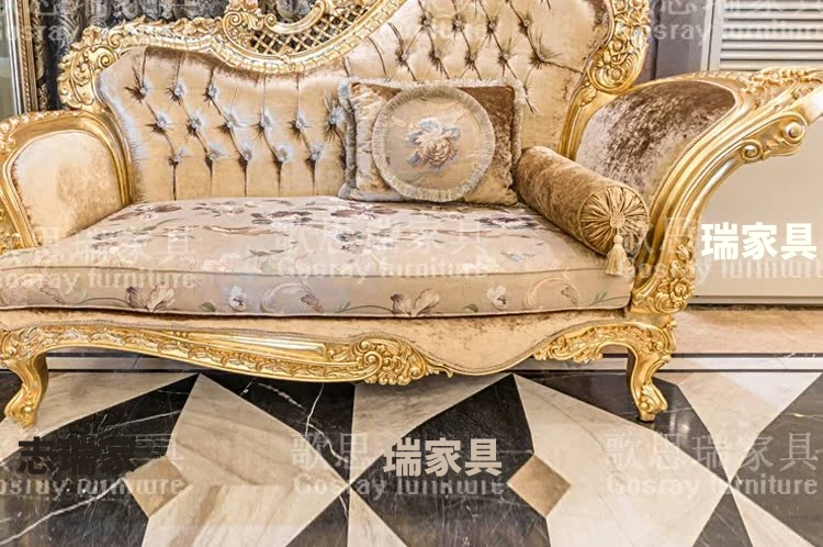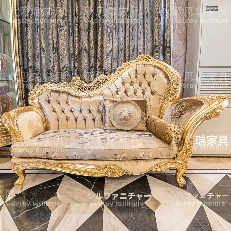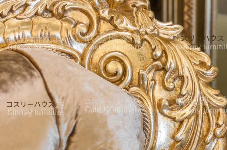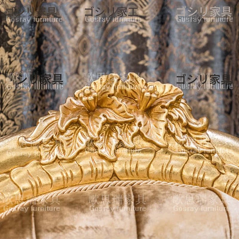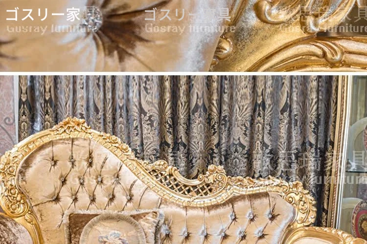欧風の高級木製彫刻付きデイベッド|アメリカンスタイルの布製ラウンジチェア|寝室にぴったりのエレガントなソファ|贅沢な貴婦人のための特別な一品!