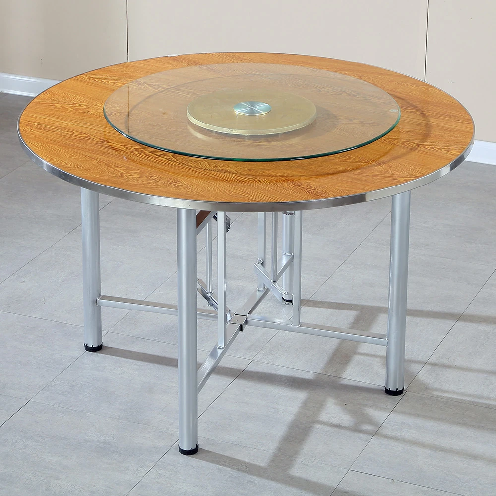折りたたみ式ガラス天板ラウンドテーブル - 家庭用や宴会に最適な大円卓!食堂やホテルにもぴったりのスタイリッシュなデザインで、使わない時はコンパクトに収納できます。