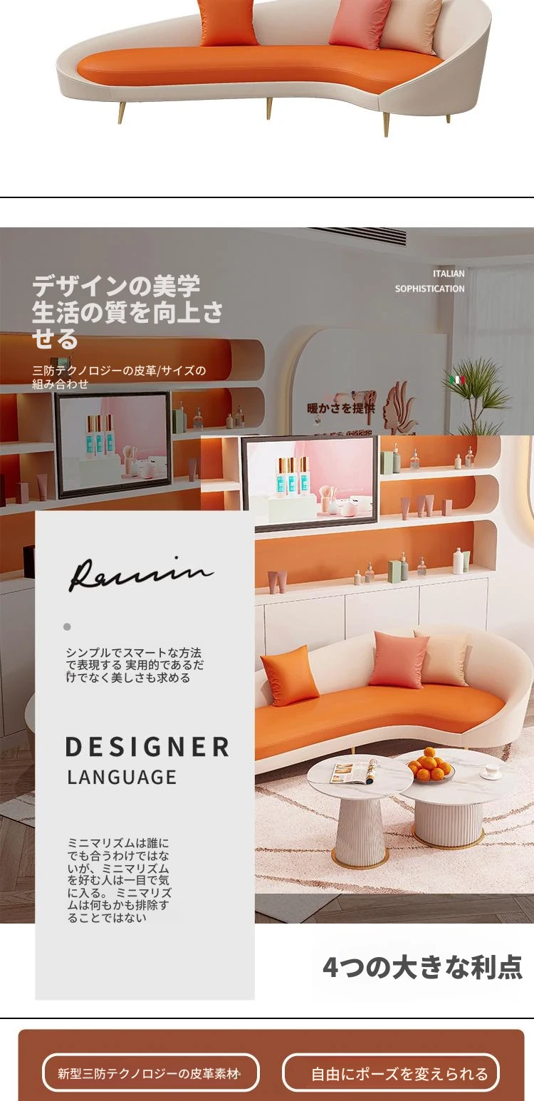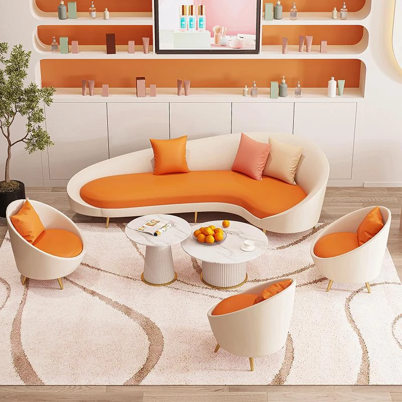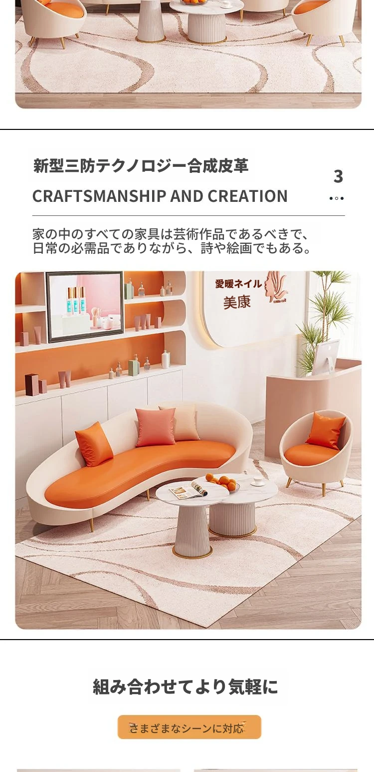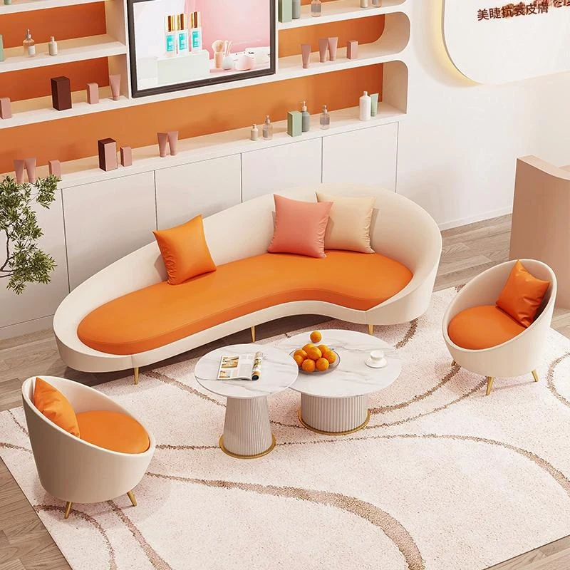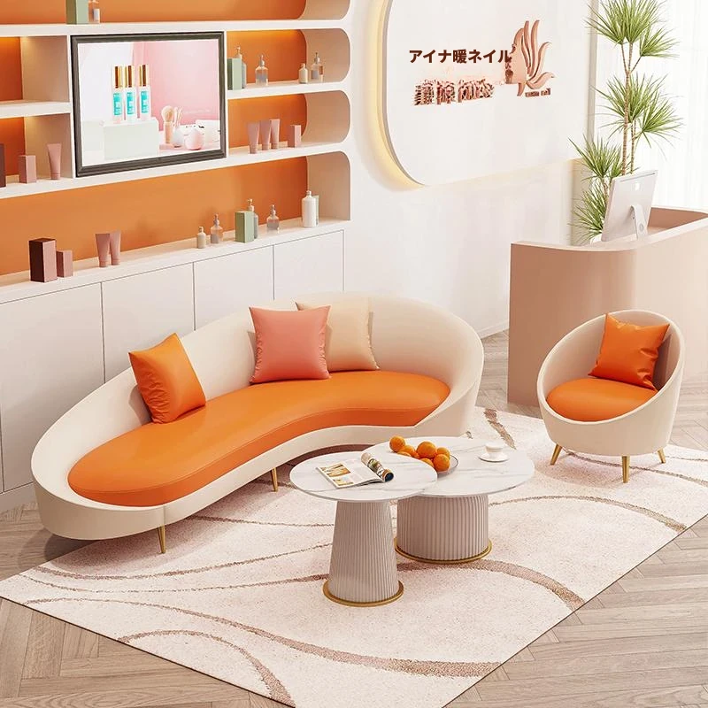 【香港送料無料】スタイリッシュなテクスチャー!美容院や小さなリビングに最適なモダンアーチ型ソファ。軽やかなラグジュアリーで、心地よい接客空間を演出します。