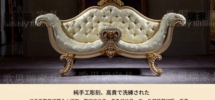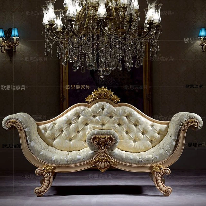 フレンチスタイルのファブリックソファチェア、木製彫刻付きの欧風貴妃椅子。寝室やリビングに最適なリラックスチェア、クラシックな美人榻(たふい)で、優雅なひとときをお楽しみください。