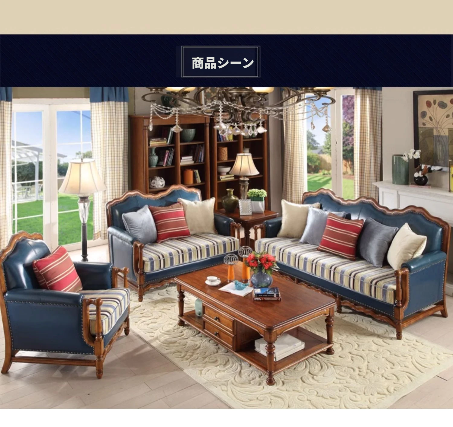 グランディール現代的シンプルアメリカン家具|本革使用!欧風リビングにぴったりの布張りソファセット!高品質な無垢材製で、スタイリッシュな空間を演出します!