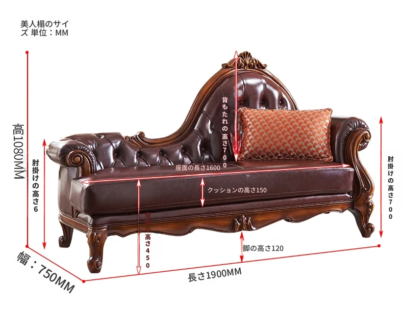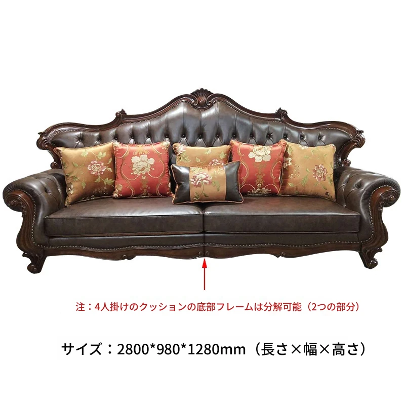 B款茶色皮ソファ4人用+オットマン+貴族椅子