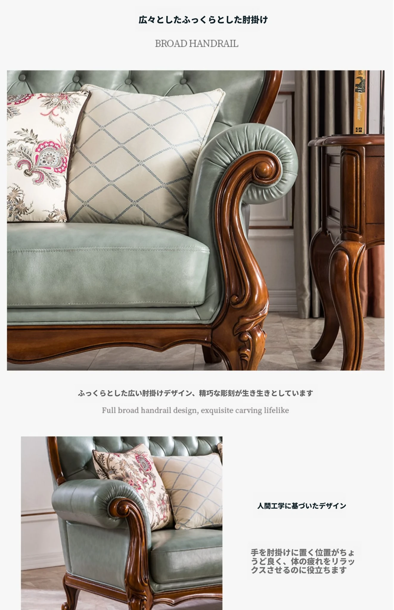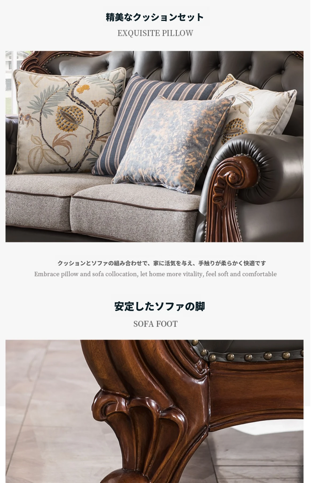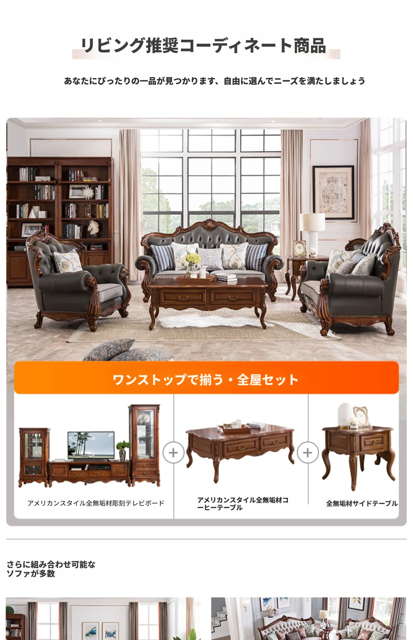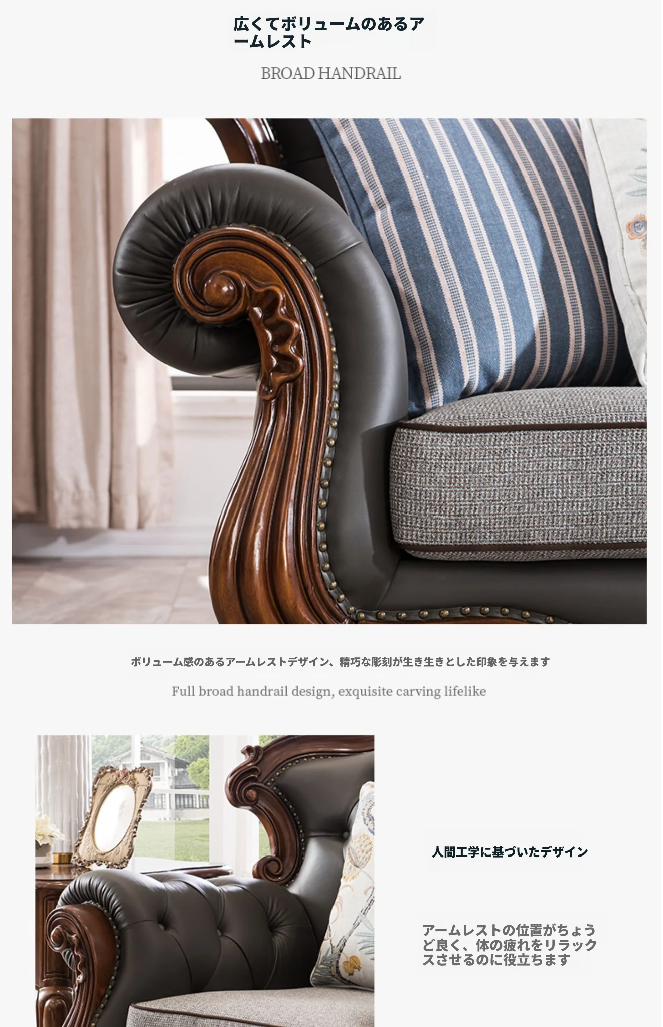 グランディール 欧式全実木 真皮軽奢ソファ 美式リビングルーム シンプルモダン コンパクトな家具 小型住宅に最適!高級感あふれるデザインで、居心地の良い空間を演出します。