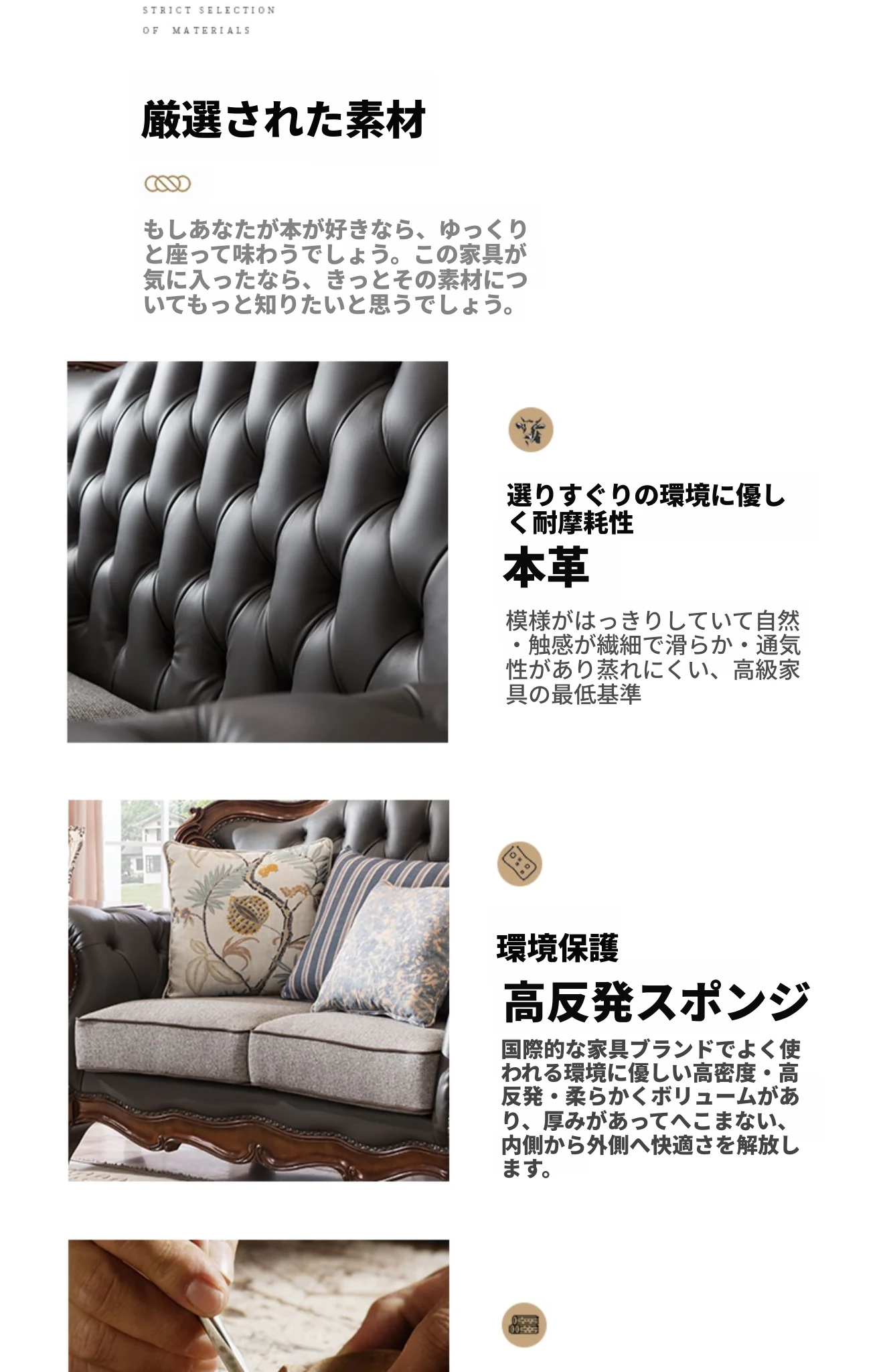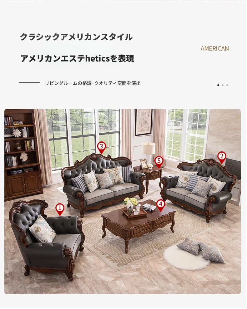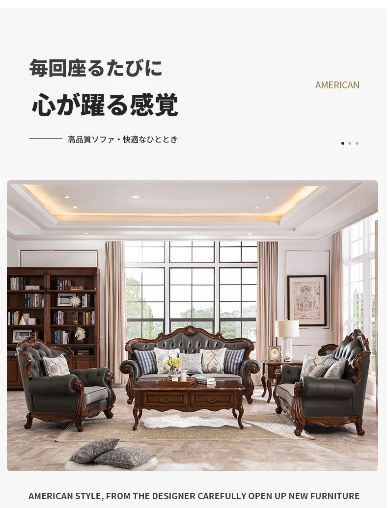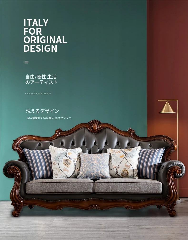 グランディール 欧式全実木 真皮軽奢ソファ 美式リビングルーム シンプルモダン コンパクトな家具 小型住宅に最適!高級感あふれるデザインで、居心地の良い空間を演出します。