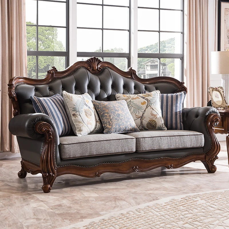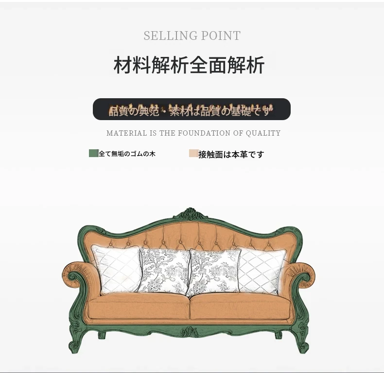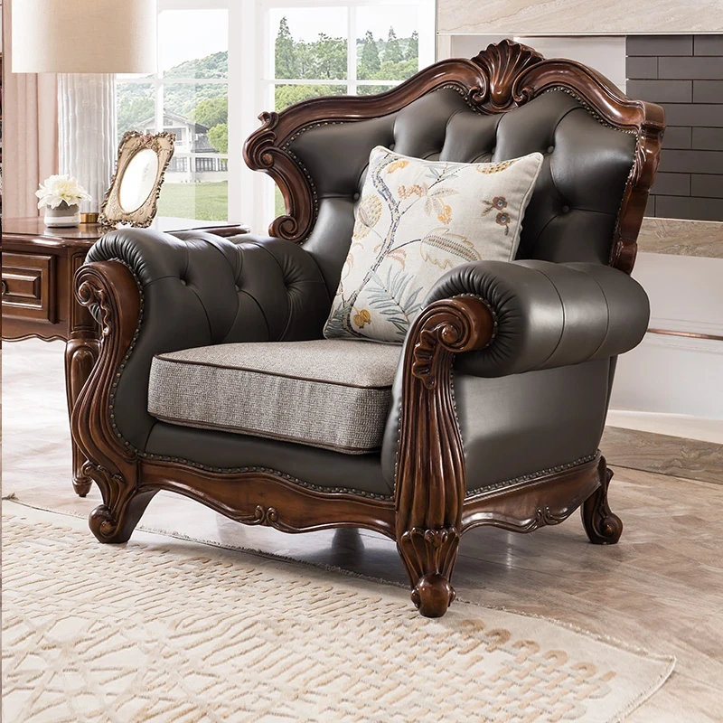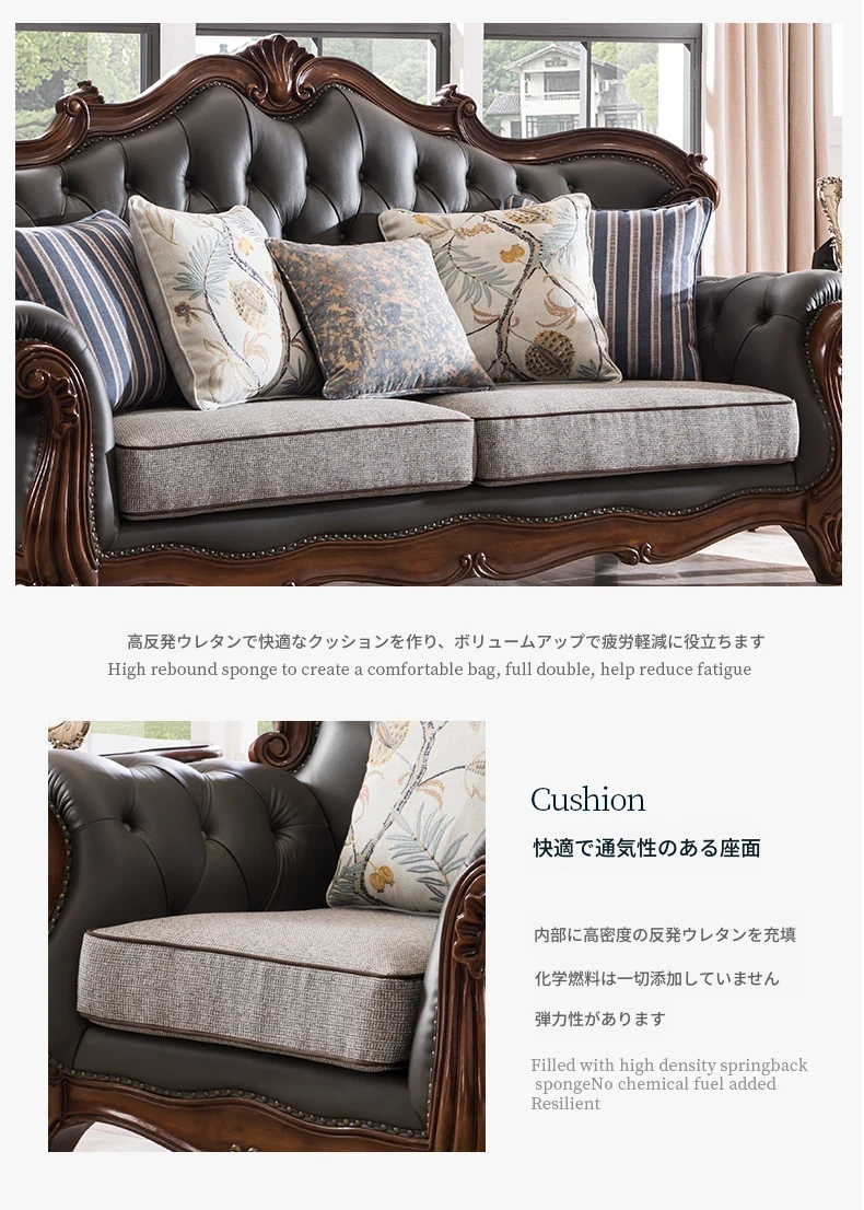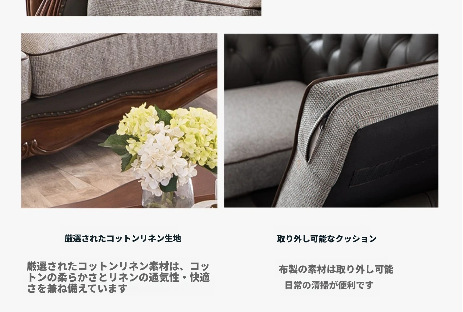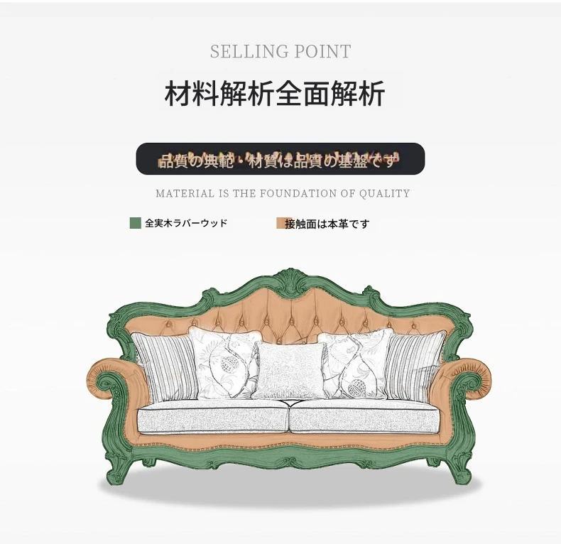 グランディール 欧式全実木 真皮軽奢ソファ 美式リビングルーム シンプルモダン コンパクトな家具 小型住宅に最適!高級感あふれるデザインで、居心地の良い空間を演出します。