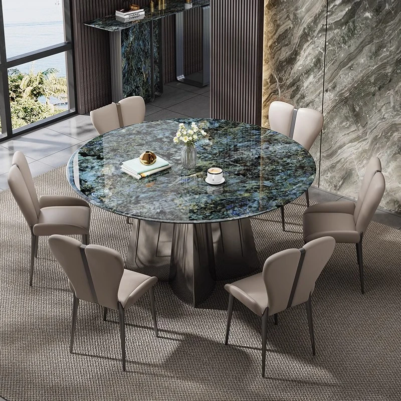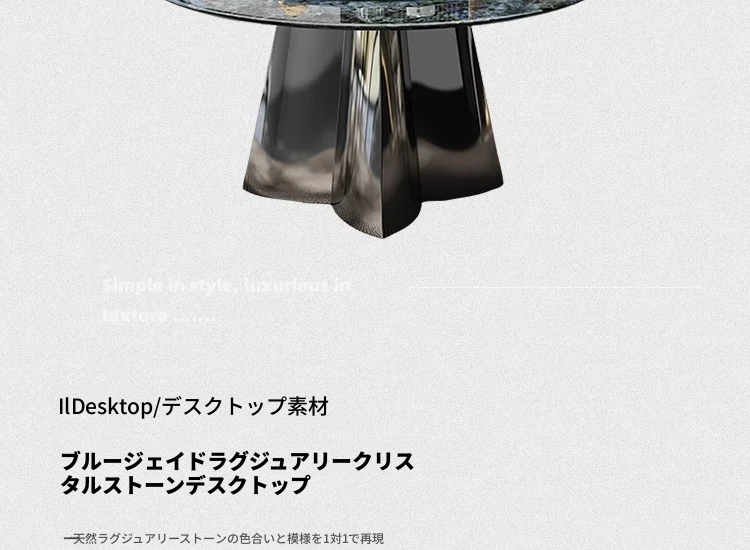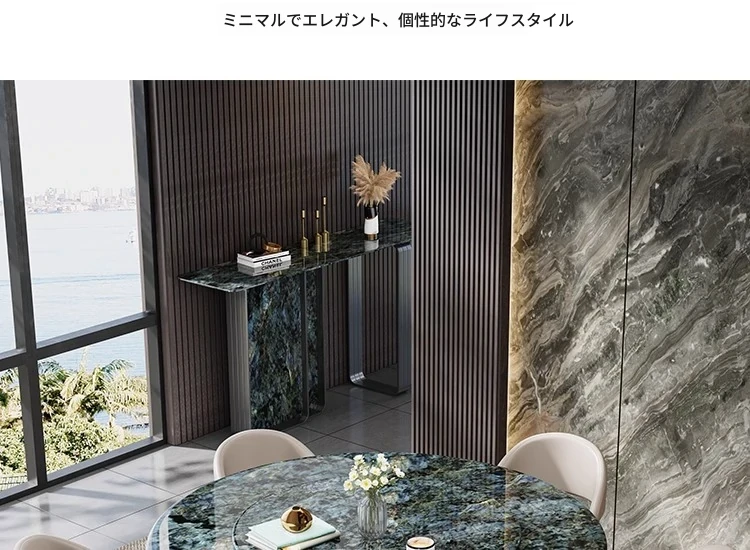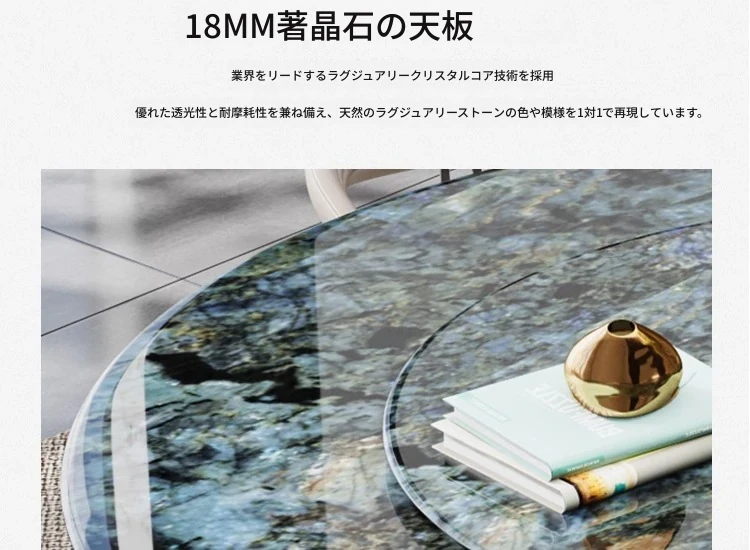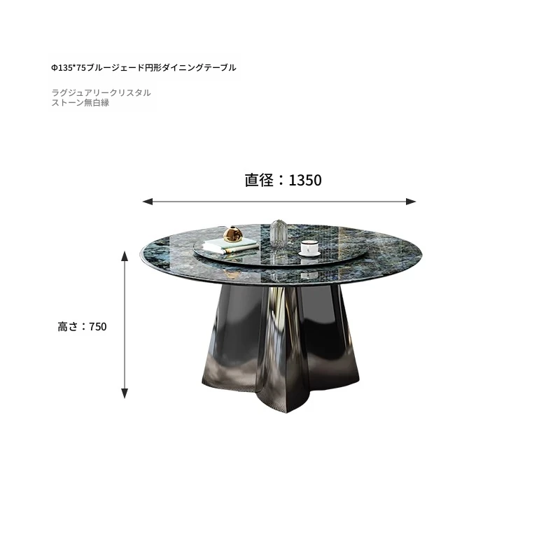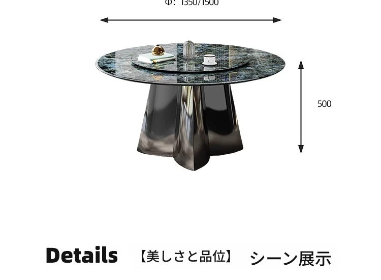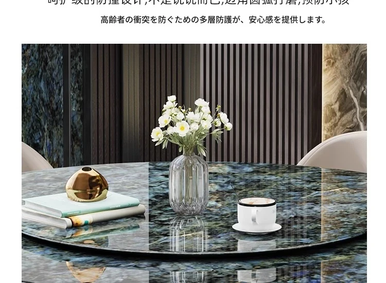 高級イタリアンデザインの天然大理石ラウンドダイニングテーブル - 回転式プレート付き、贅沢なクリスタル仕上げ。スタイリッシュな食卓セットで、家族や友人との特別なひとときを演出します。