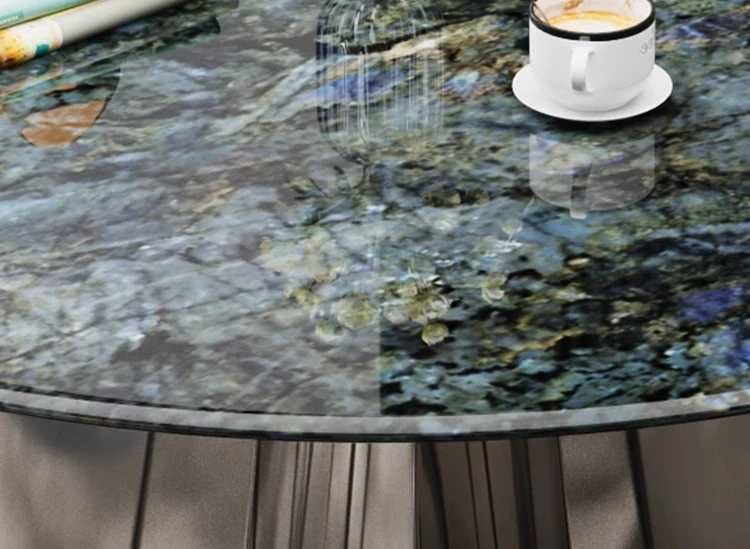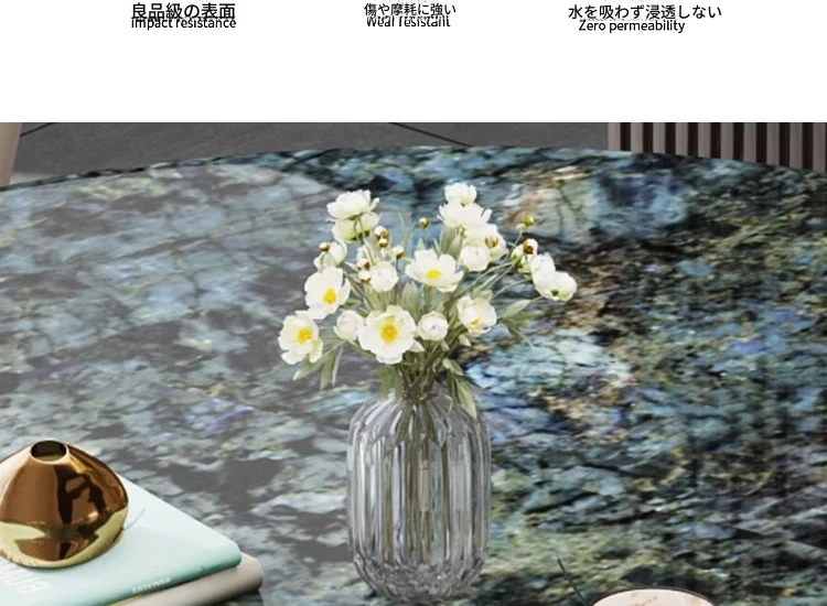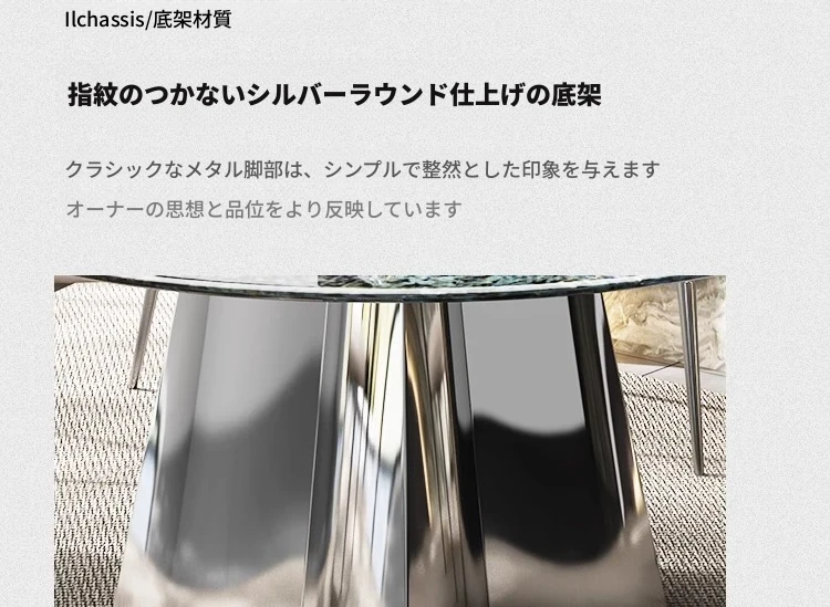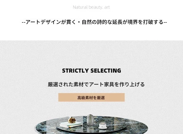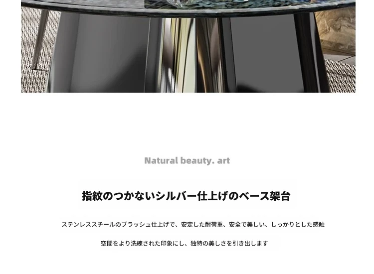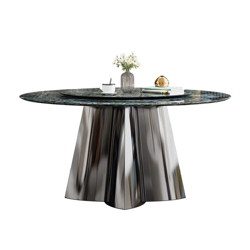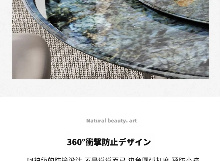 高級イタリアンデザインの天然大理石ラウンドダイニングテーブル - 回転式プレート付き、贅沢なクリスタル仕上げ。スタイリッシュな食卓セットで、家族や友人との特別なひとときを演出します。