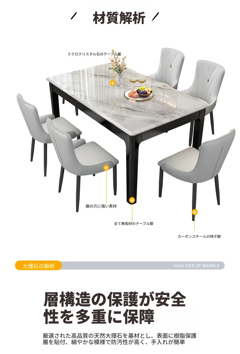 1.5メートル単テーブル(高級ブランド微晶石)込み 魚尾椅子西洋テーブル黒色/0b4