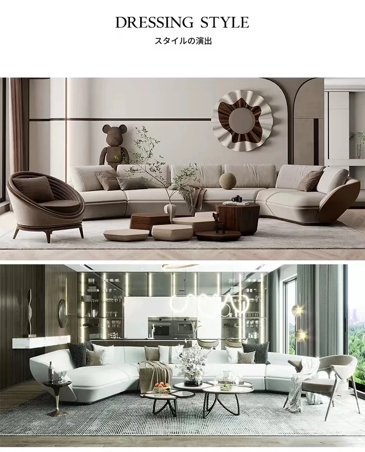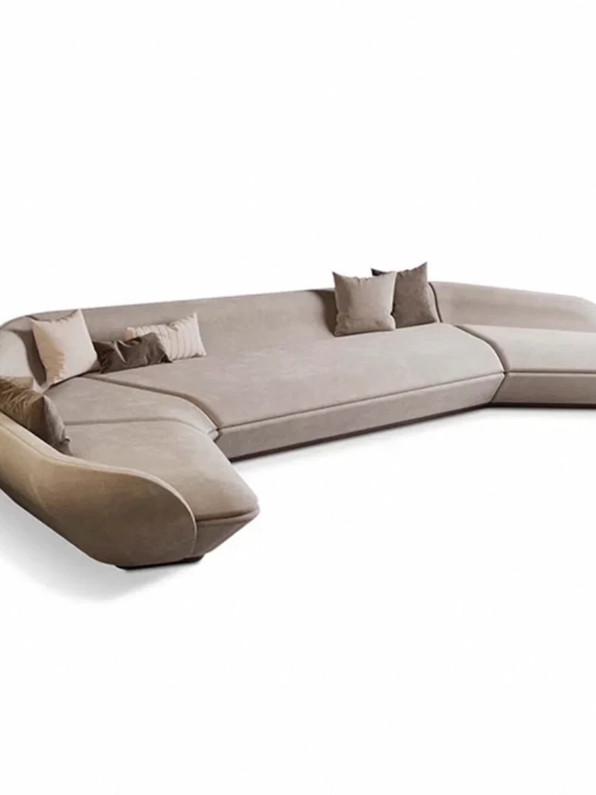 イタリアンファブリックソファ 大リビング向け シンプルでラグジュアリーなデザイン 高級感溢れる真皮アーチソファ モダンな大空間にぴったり!