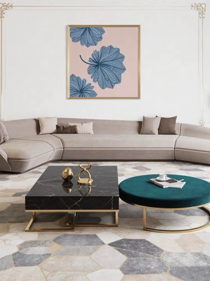 フレンチカントリー布製ソファ 欧風ゴールドリーフソファ 123組み合わせ 新古典的なヴィラ向けラグジュアリー無垢材ソファで、優雅なひとときをお楽しみください。