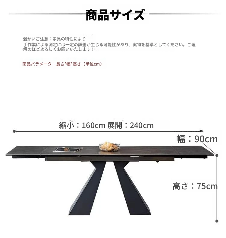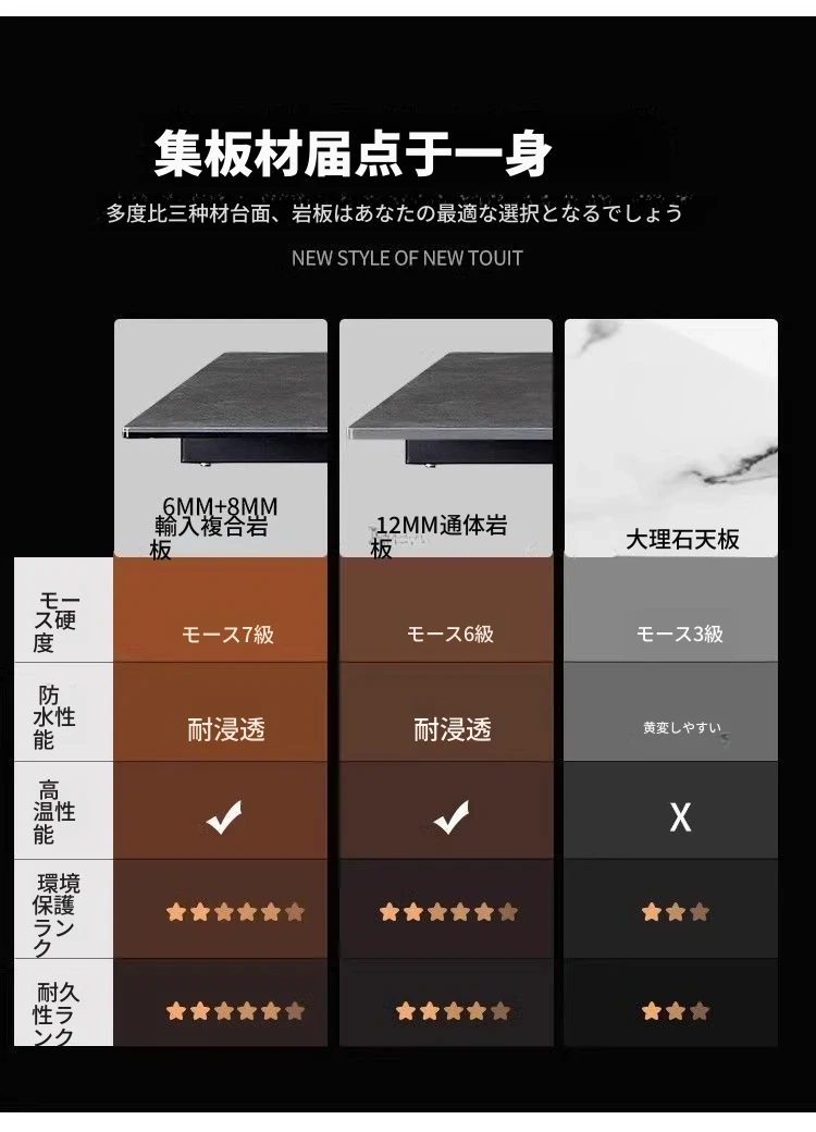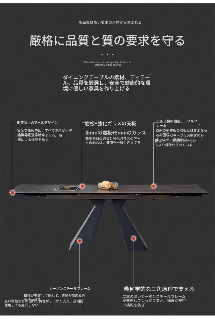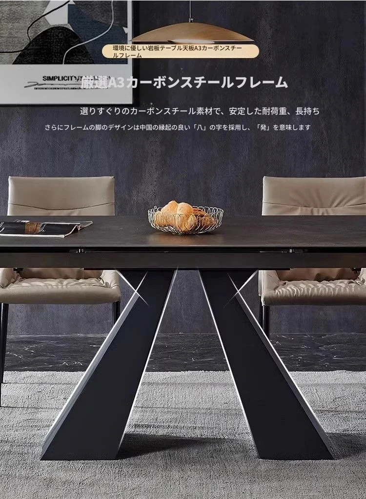1.6M伸縮2.4M+6脚Aチェア/14mm複合岩板テーブルトップ