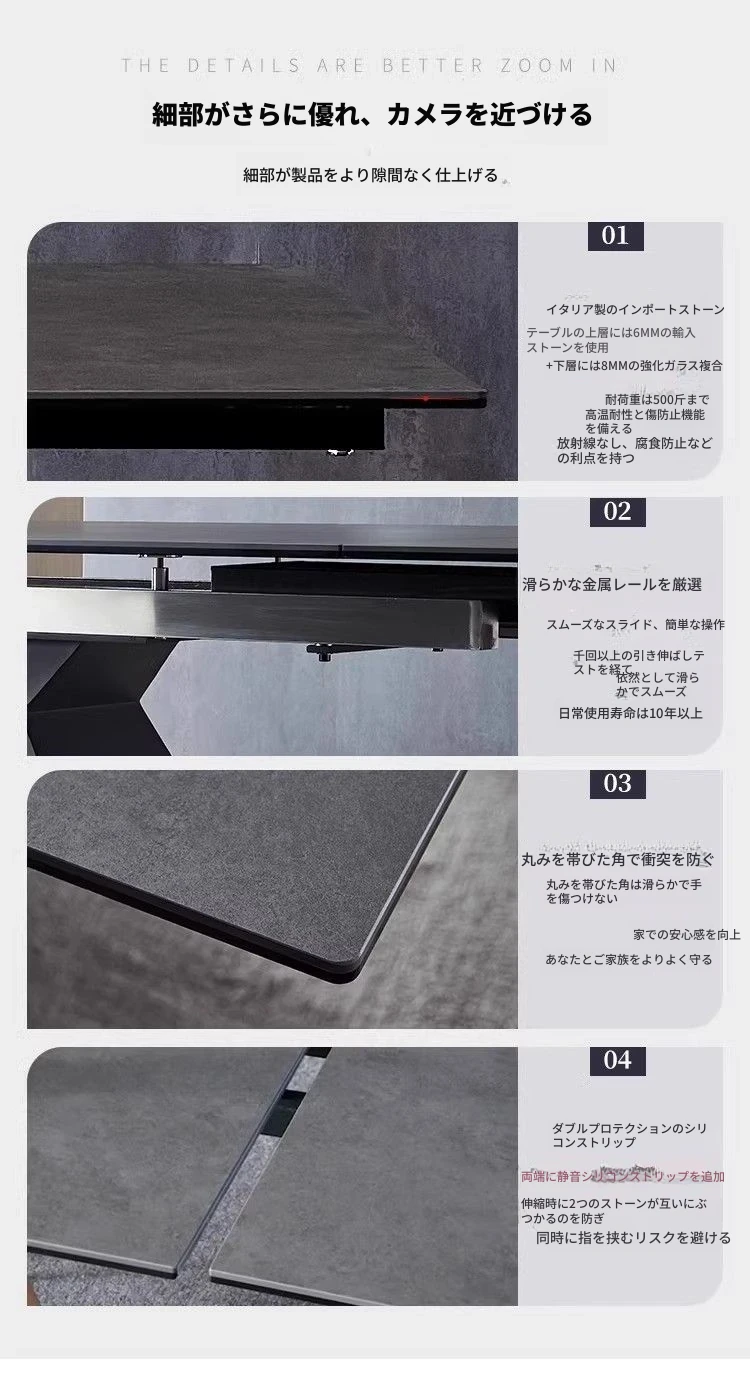 1.4M伸縮2.0M+4脚Aチェア/12mm純粋な岩板テーブルトップ