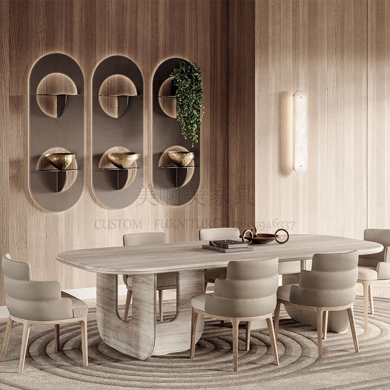イタリアンラグジュアリーデザイン 新作大理石ダイニングテーブル フレンチヴィンテージスタイルの岩板ダイニングテーブル&チェアセット ヴィラにぴったりの洗練された空間を演出!