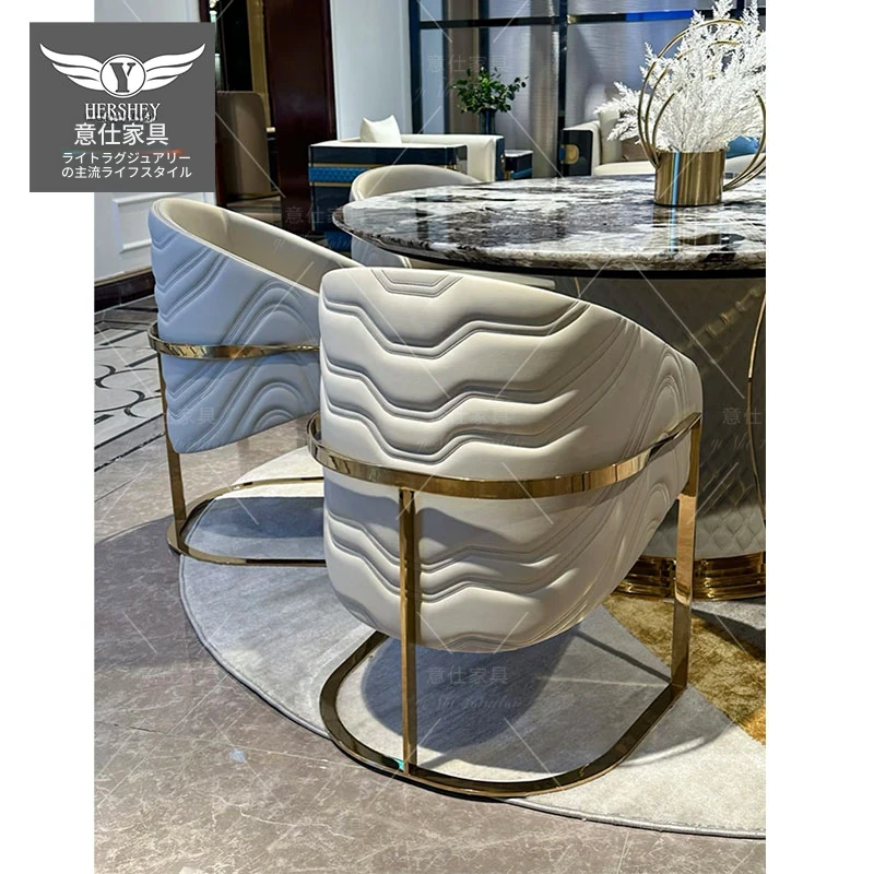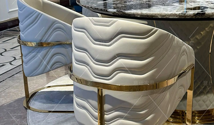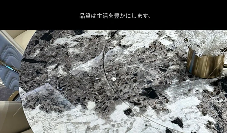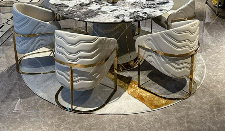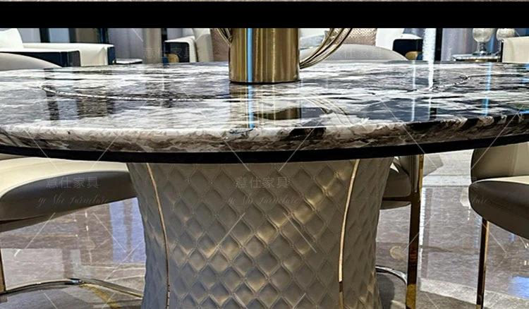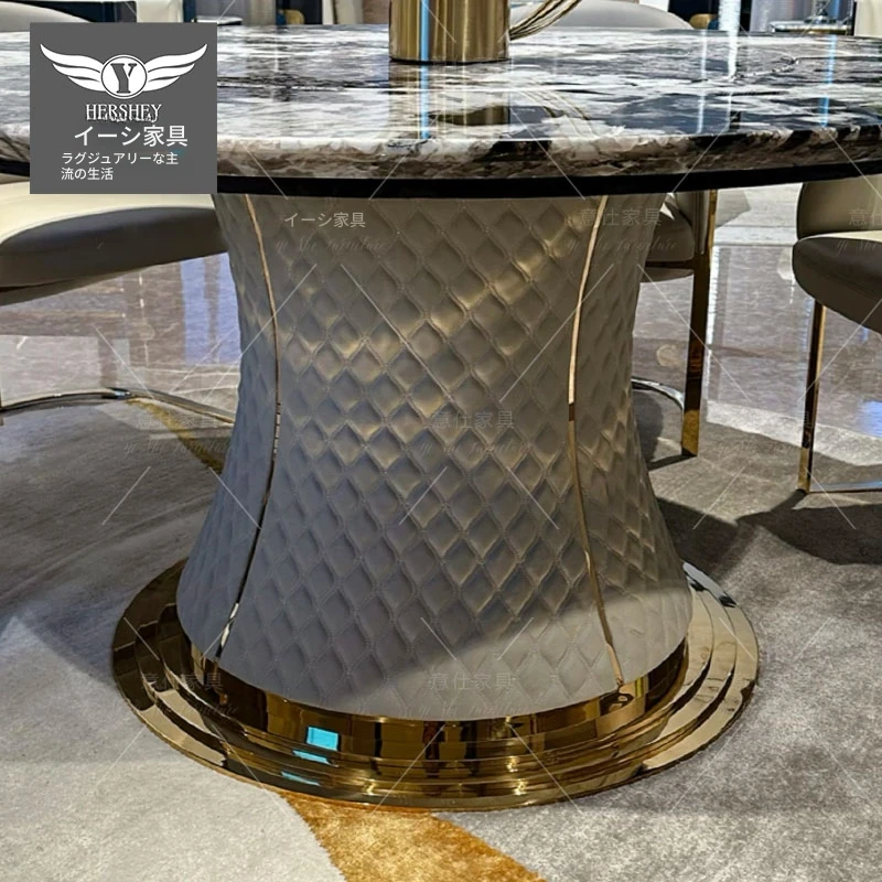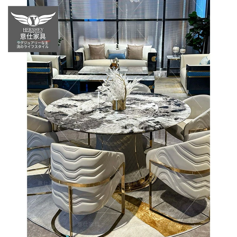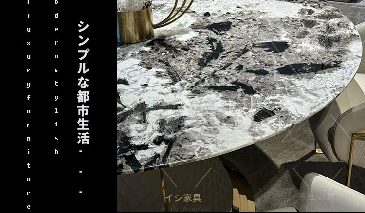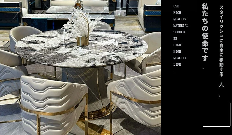 イタリアンラグジュアリー!フェンディ大理石ダイニングテーブル&チェアセット - ヴィラのレストランにぴったりな豪華な円形ベントレー風ダイニングテーブルと椅子。