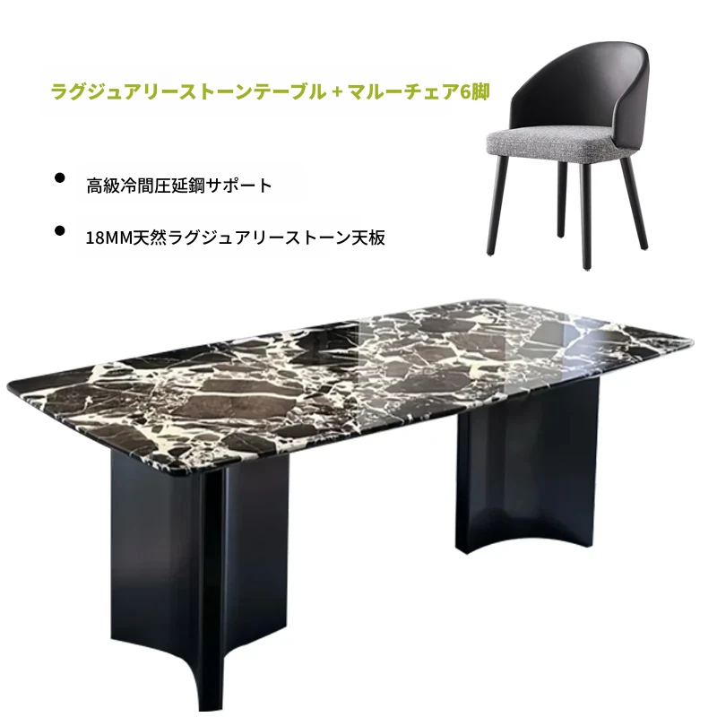 1テーブル+マルー6脚【厚さ36mmの輸入天然豪華石】偽物の場合は10倍返し