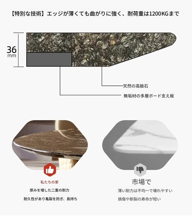 単一ダイニングテーブル【厚さ36mmの輸入天然豪華石】偽物の場合は10倍返し