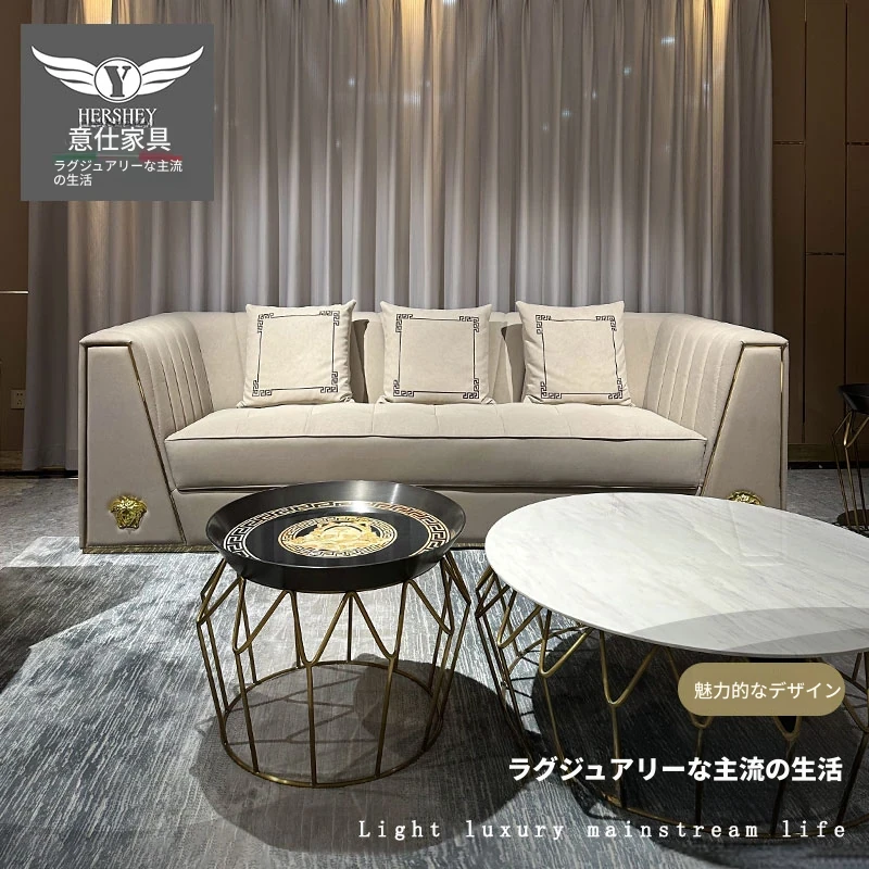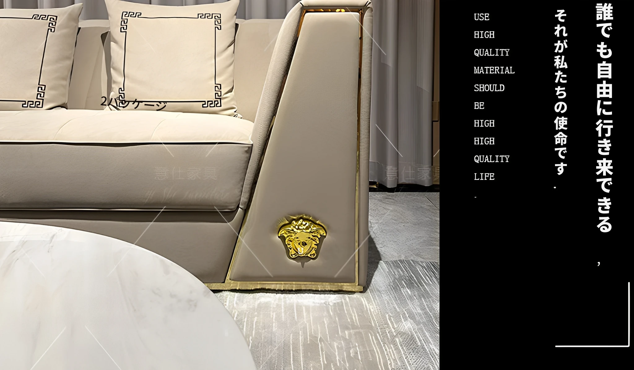 イタリアンラグジュアリー・マット仕上げソファ|別荘やクラブに最適な本革3人掛けソファ&コーヒーテーブルセット|洗練されたデザインで贅沢なリビング空間を演出!