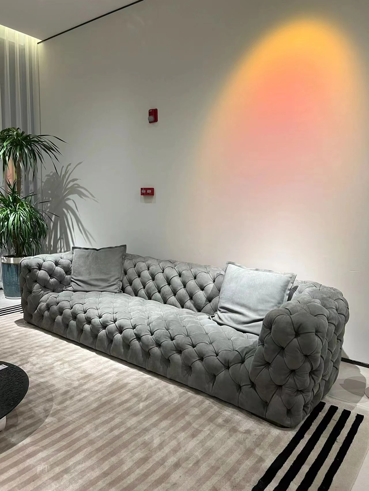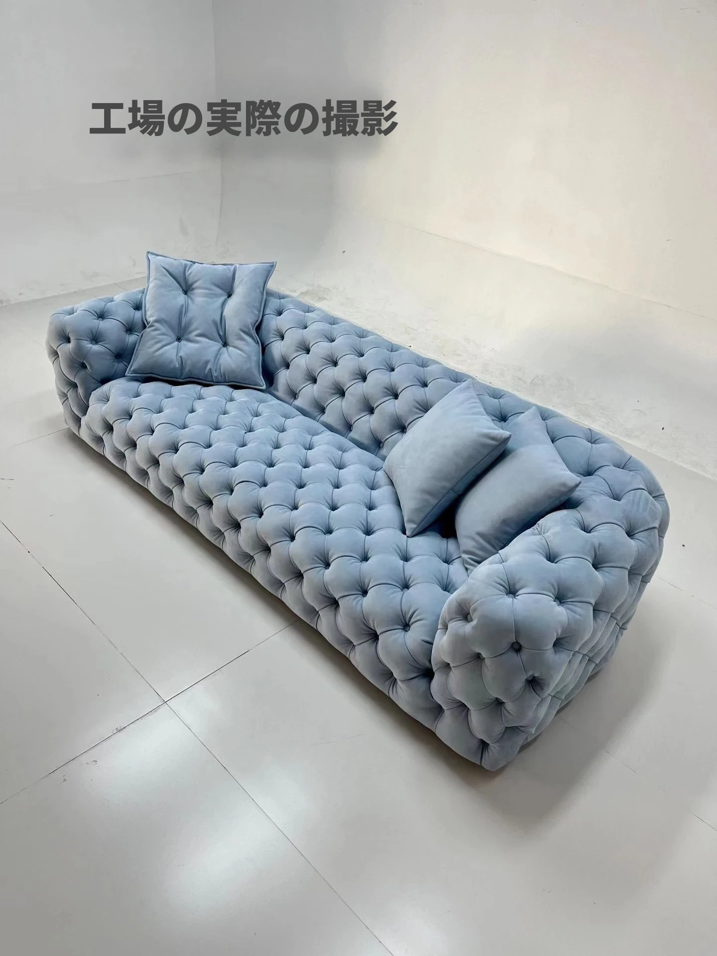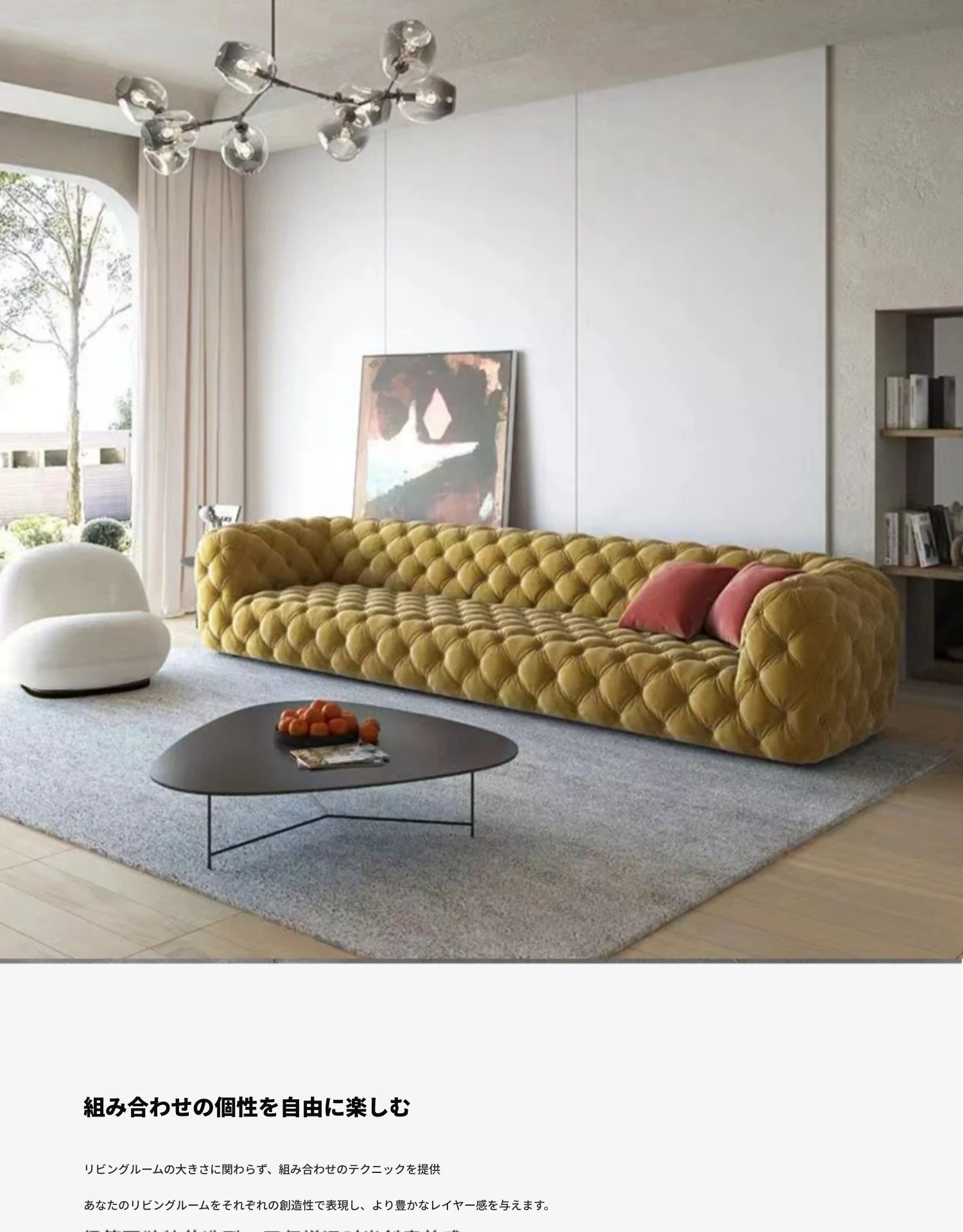 イタリアンファブリックソファ 大リビング向け シンプルでラグジュアリーなデザイン 高級感溢れる真皮アーチソファ モダンな大空間にぴったり!