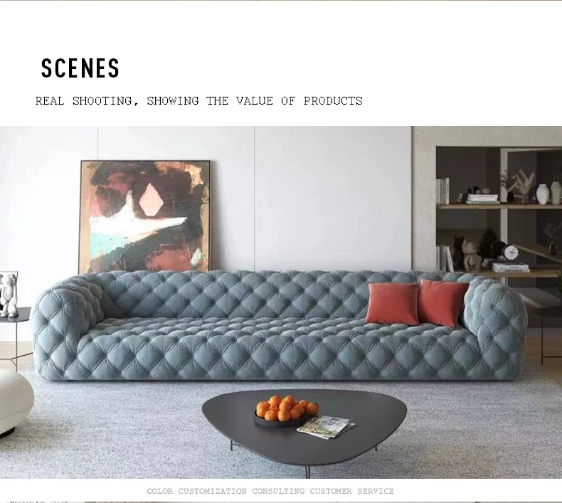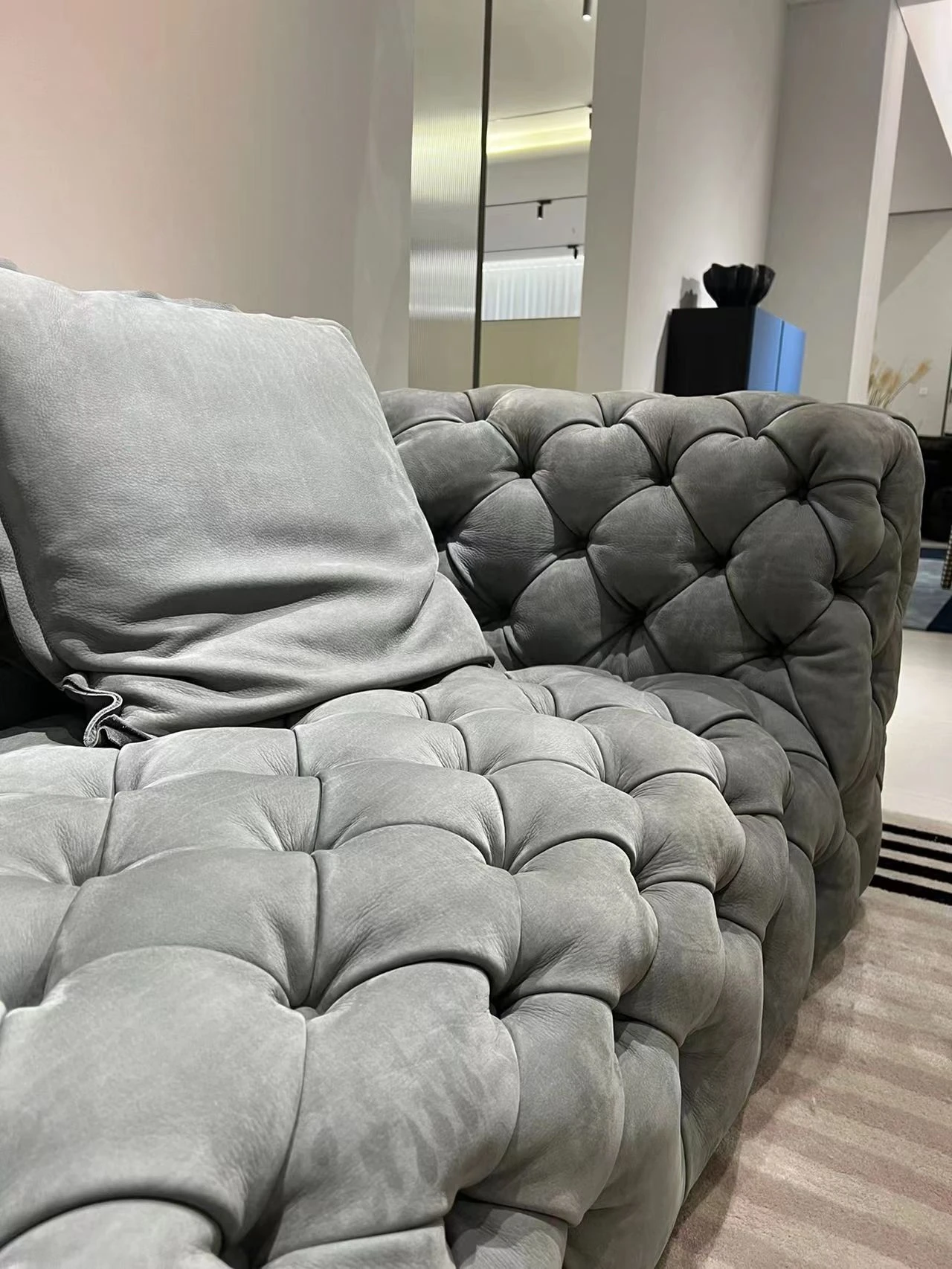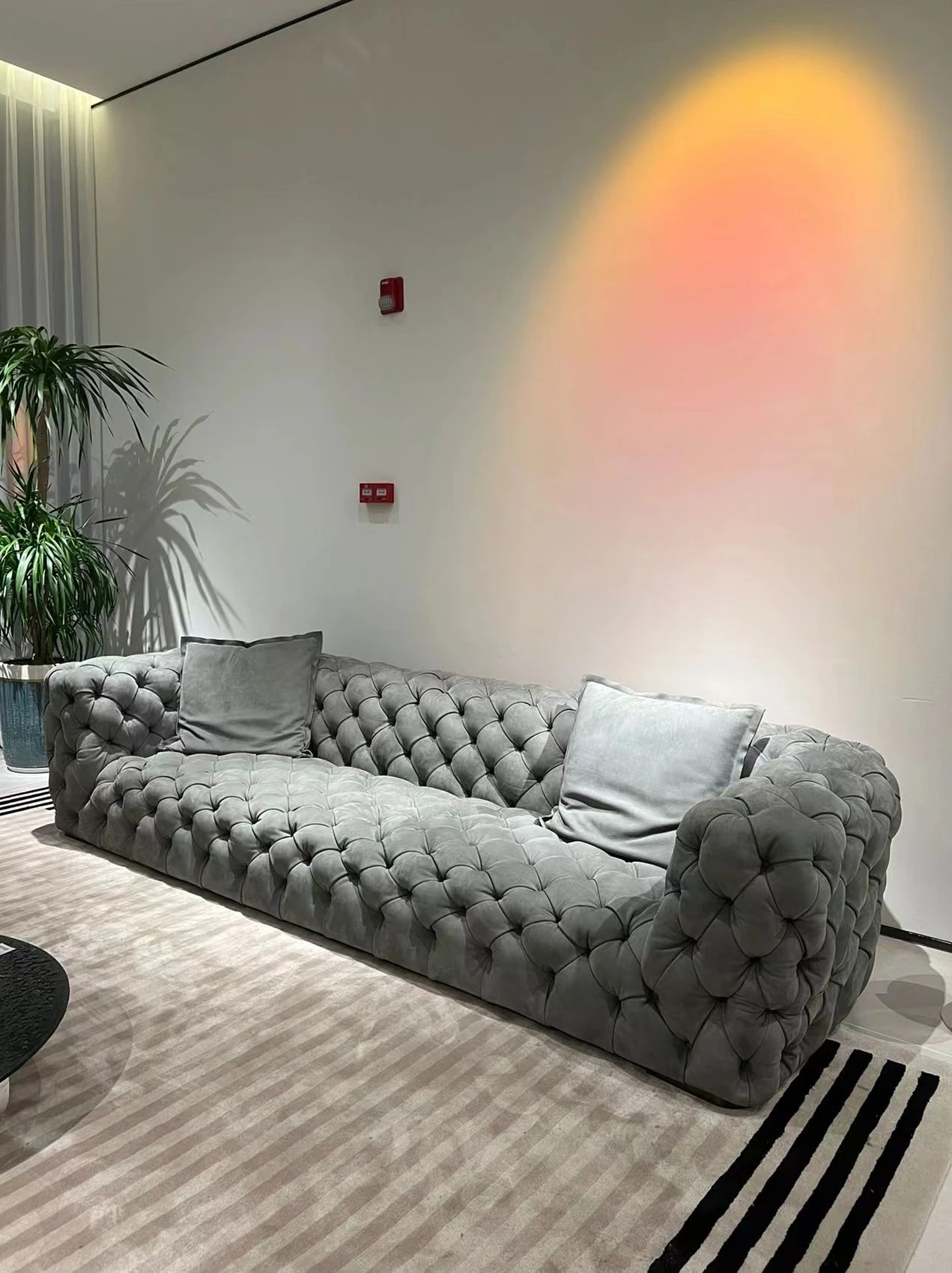 イタリアンファブリックソファ 大リビング向け シンプルでラグジュアリーなデザイン 高級感溢れる真皮アーチソファ モダンな大空間にぴったり!